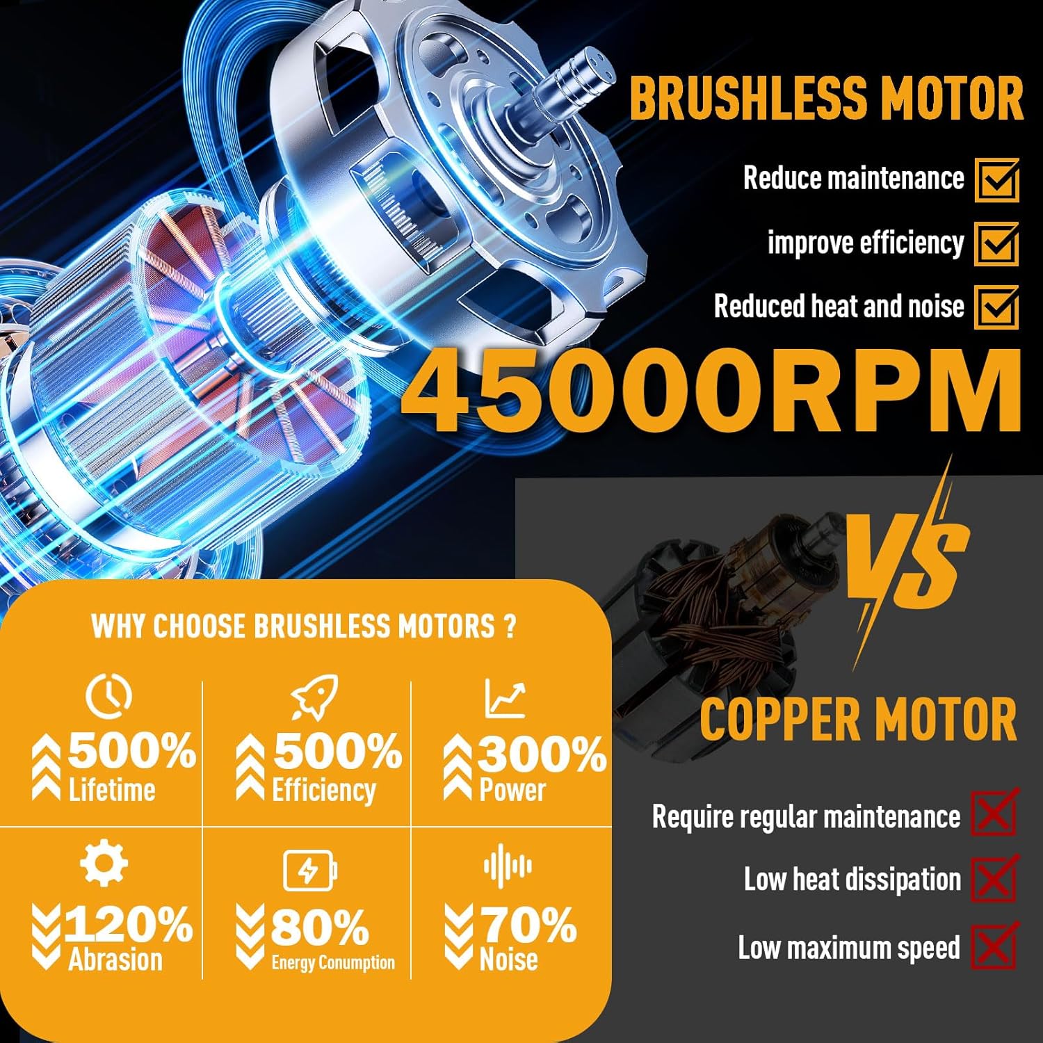 - 【Advanced Axial Fan Technology and High Performance Brushless Motors】: The Sihuird Leaf Blower uses a High Efficiency Brushless Motor, Maximum setting 45000 rpm, Adopting advanced axial fan technology, it provides greater air volume and more heat dissipation than traditional centrifugal fans. And equipped with 12 turbine blades and turbocharging function, providing higher airflow. Air volume and wind speed up to 720CFM and 210MPH.