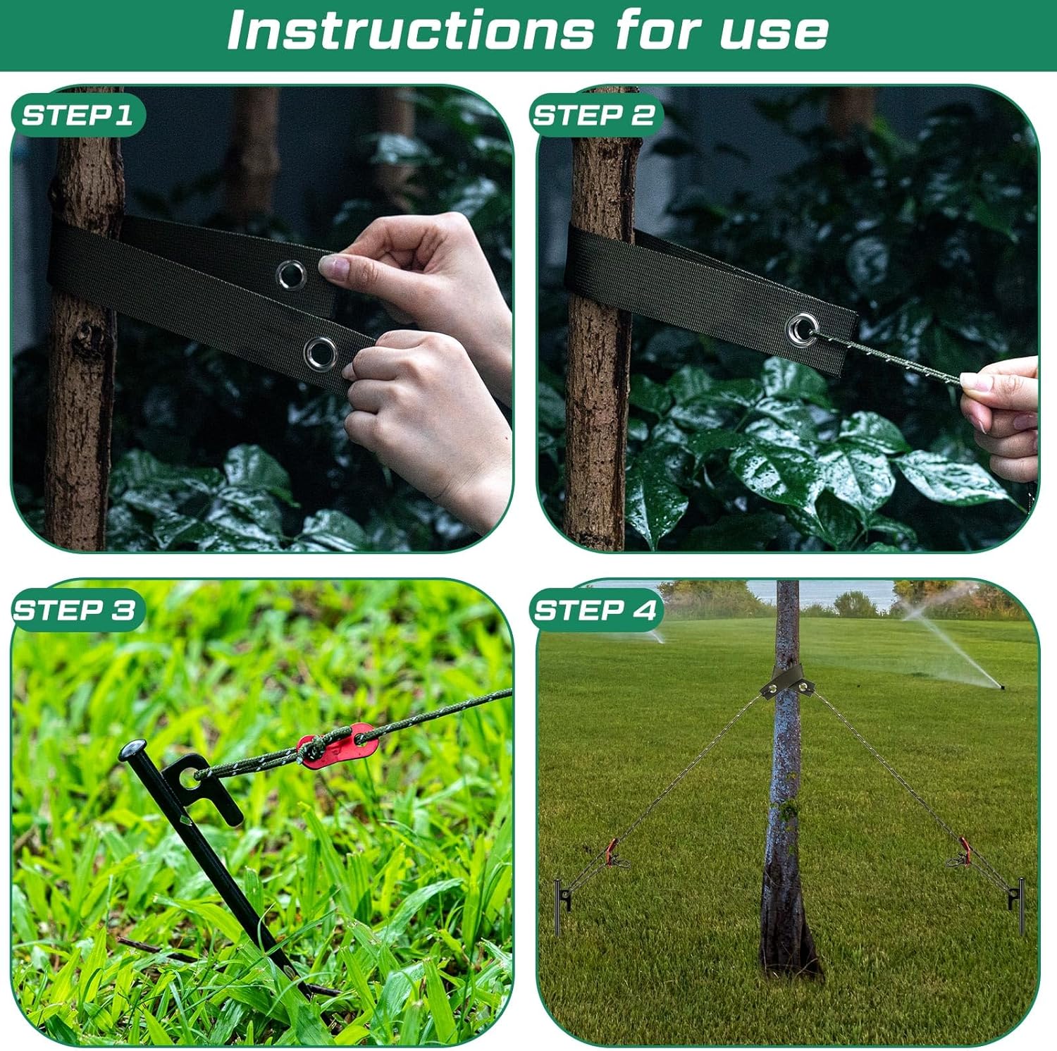 - Easy to Use: just nailed the metal spikes in, applied the support ropes and straps on the trees, then adjust your tree to keep vertical, finally readjust the tension, simple installation steps can be done by one person, both professionals or beginners can easily use the tree staking and supports kits