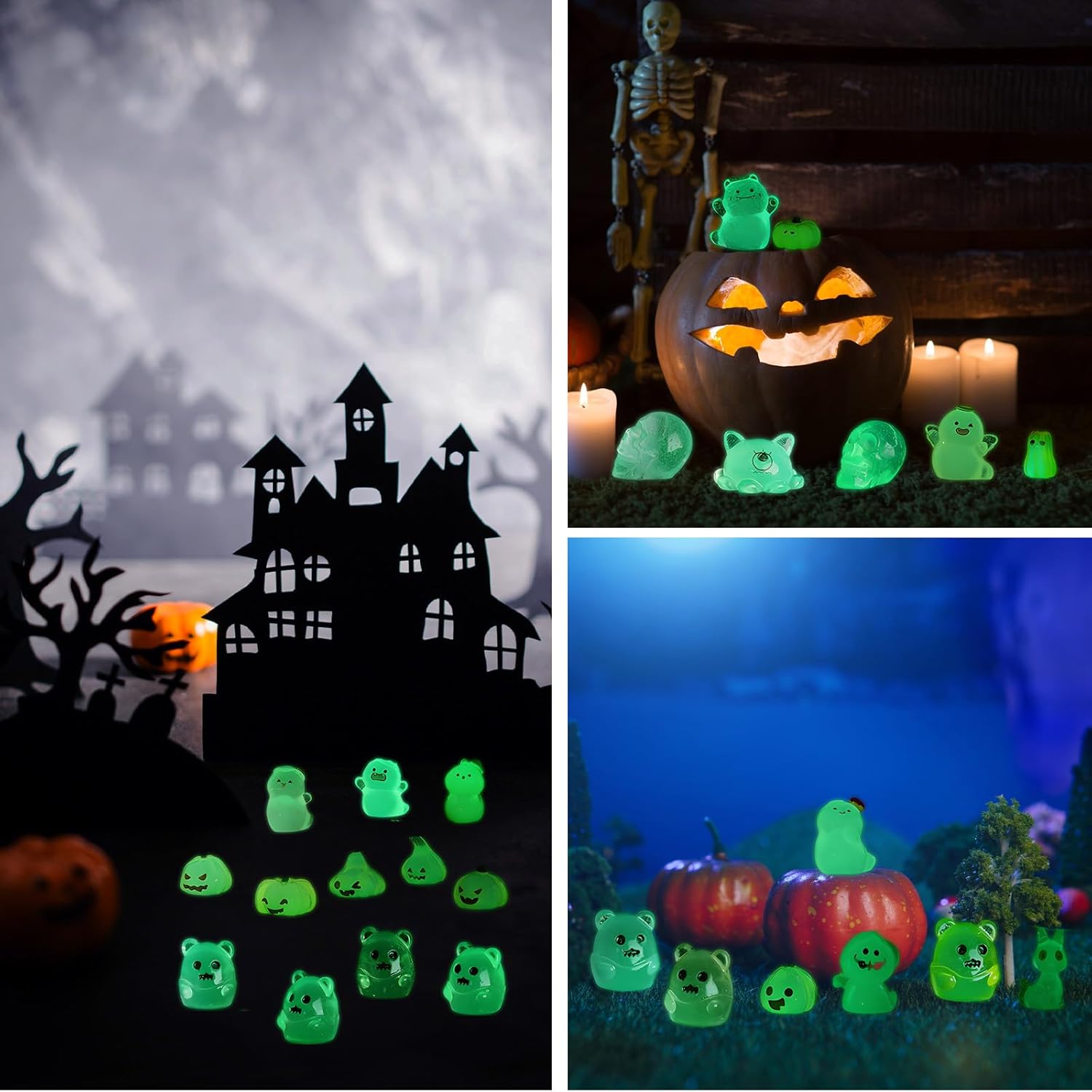 - Halloween Glow in Dark Figures Set: transform your space with 58 diverse glow in dark Halloween figures, Halloween miniatures illuminate in the dark; Craft a full-fledged Halloween ambiance effortlessly