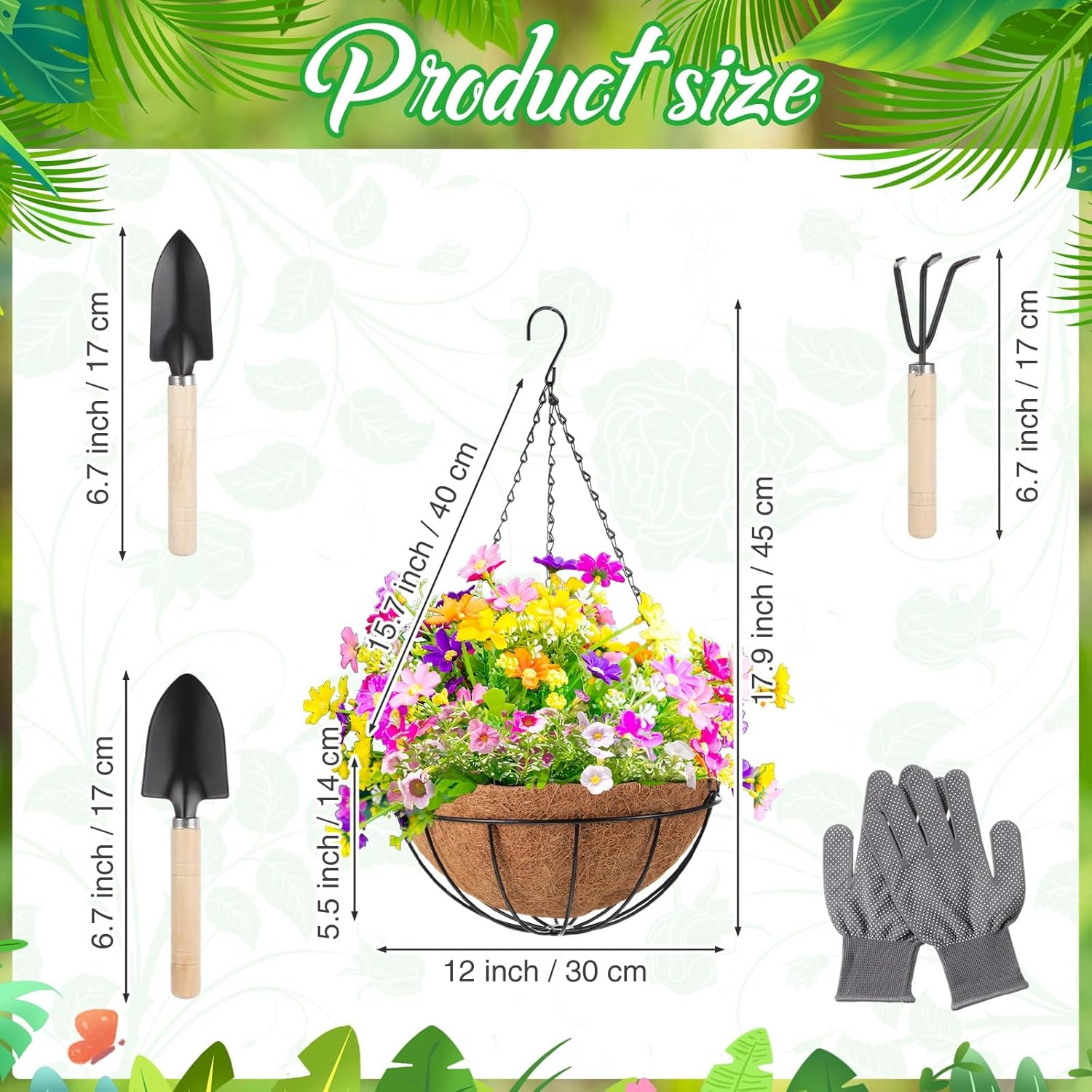 - Competed Gardening Set: The package included 3 pack metal hanging baskets with hanging chains and ceiling, 1 trowel, 1 transplanter, 1 cultivator, and 1 pair of garden gloves. This complete package equips you with everything needed for easy plant transfer and maintenance, streamlining your gardening experience