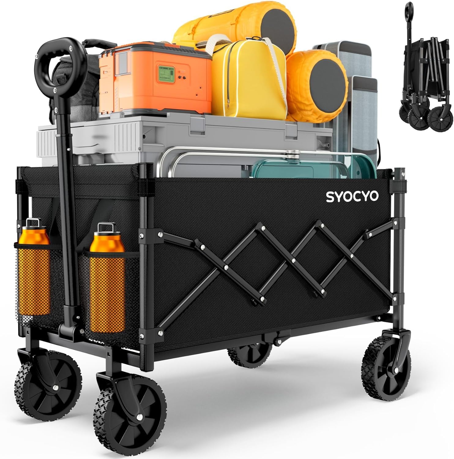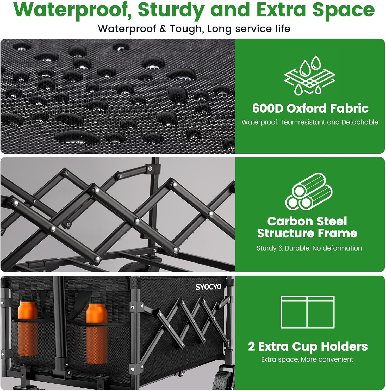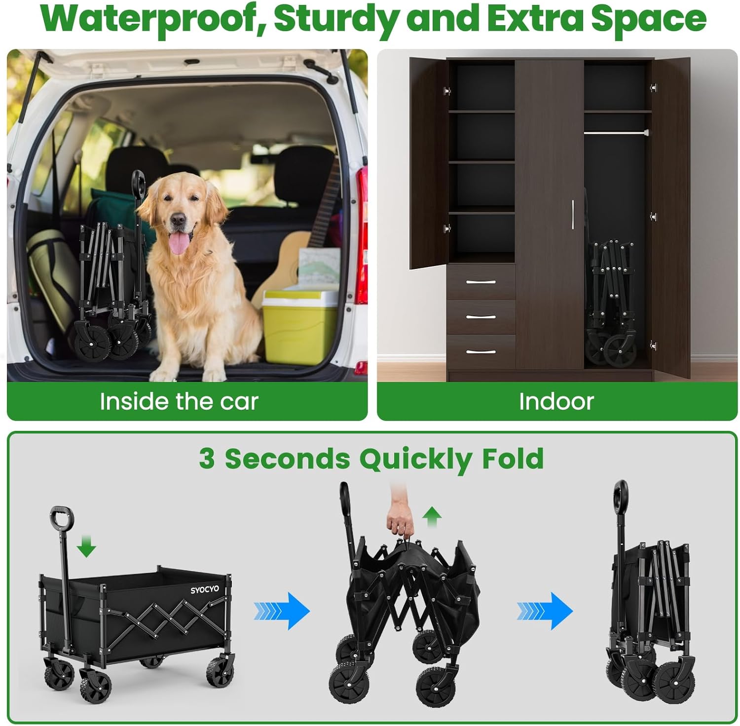 - Superior All-Terrain Performance: Navigate any surface with confidence thanks to four premium all-terrain wheels, featuring two 360Β° swivel front casters, our wagon conquers every surface from sandy beaches to rocky trails.Whether you're crossing sandy beaches, grassy parks, or uneven pavement, our wagon cart ensures smooth, stable movement in any environment.