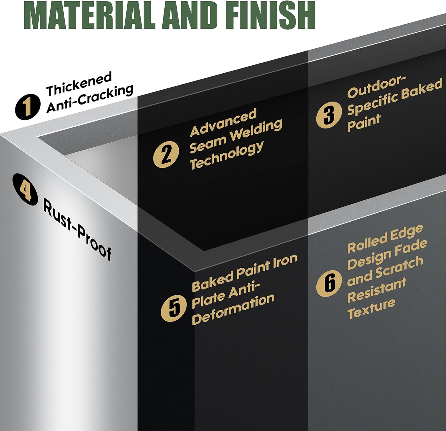 - Military-Grade Rust Defense:The metal planter box forged from outdoor iron with triple-layer baked enamel finish, giving it a luxurious metallic finish and unique texture, ensures that planter is durable and strong,our planters laugh off coastal salt, Midwest snow, and desert sun.