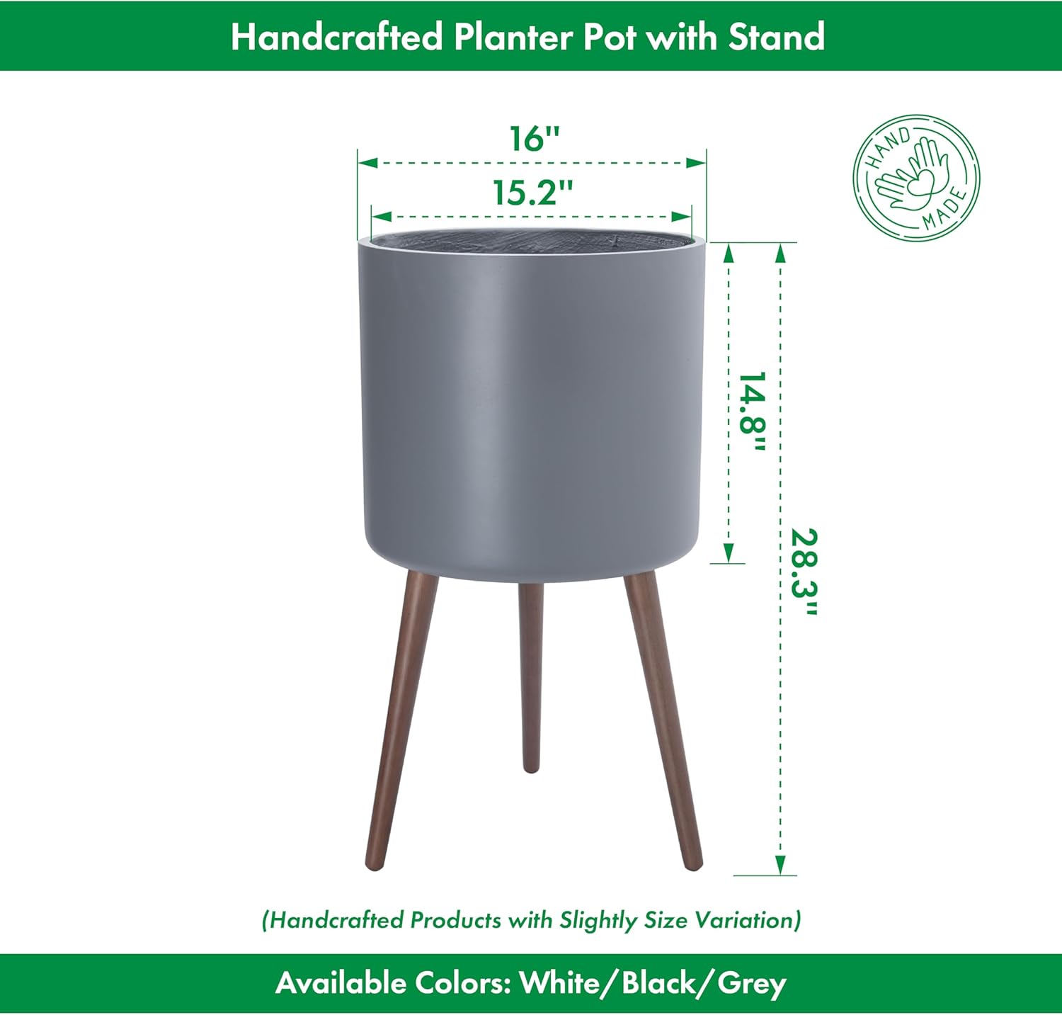 D'vine Dev 16 Inch Planter Pot with Stand, Mid-Century Tall Plant Pot with Legs for Indoor Plants, XX-Large, Grey, 88-O-E-3