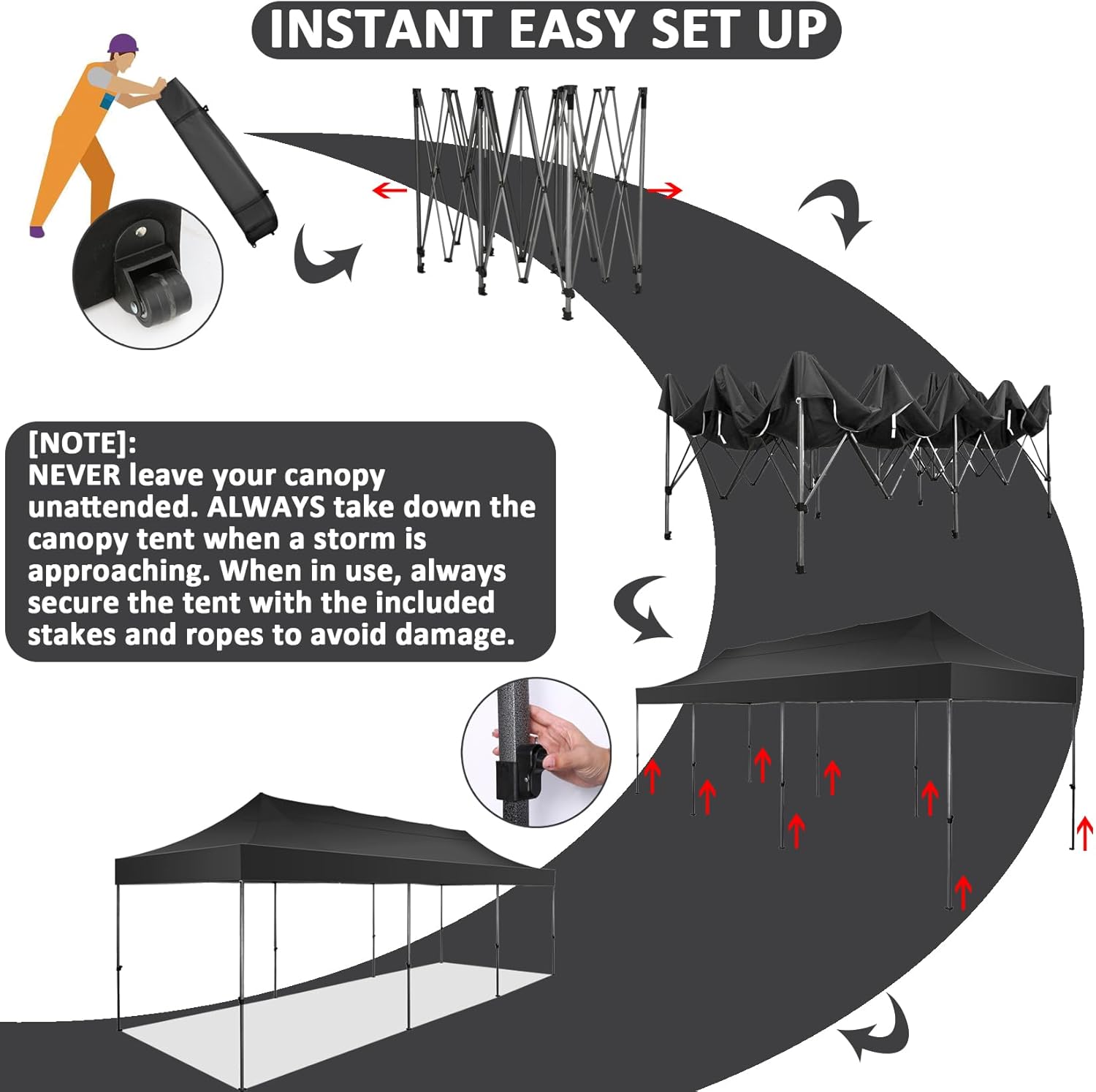 COBIZI 10x30 Pop Up Canopy Without Sidewall,Heavy Duty Canopy UPF 50+ All Season Wind Waterproof Commercial Outdoor Wedding Party Tents for Parties Gazebo with Roller Bag(10 x 30 ft Black)