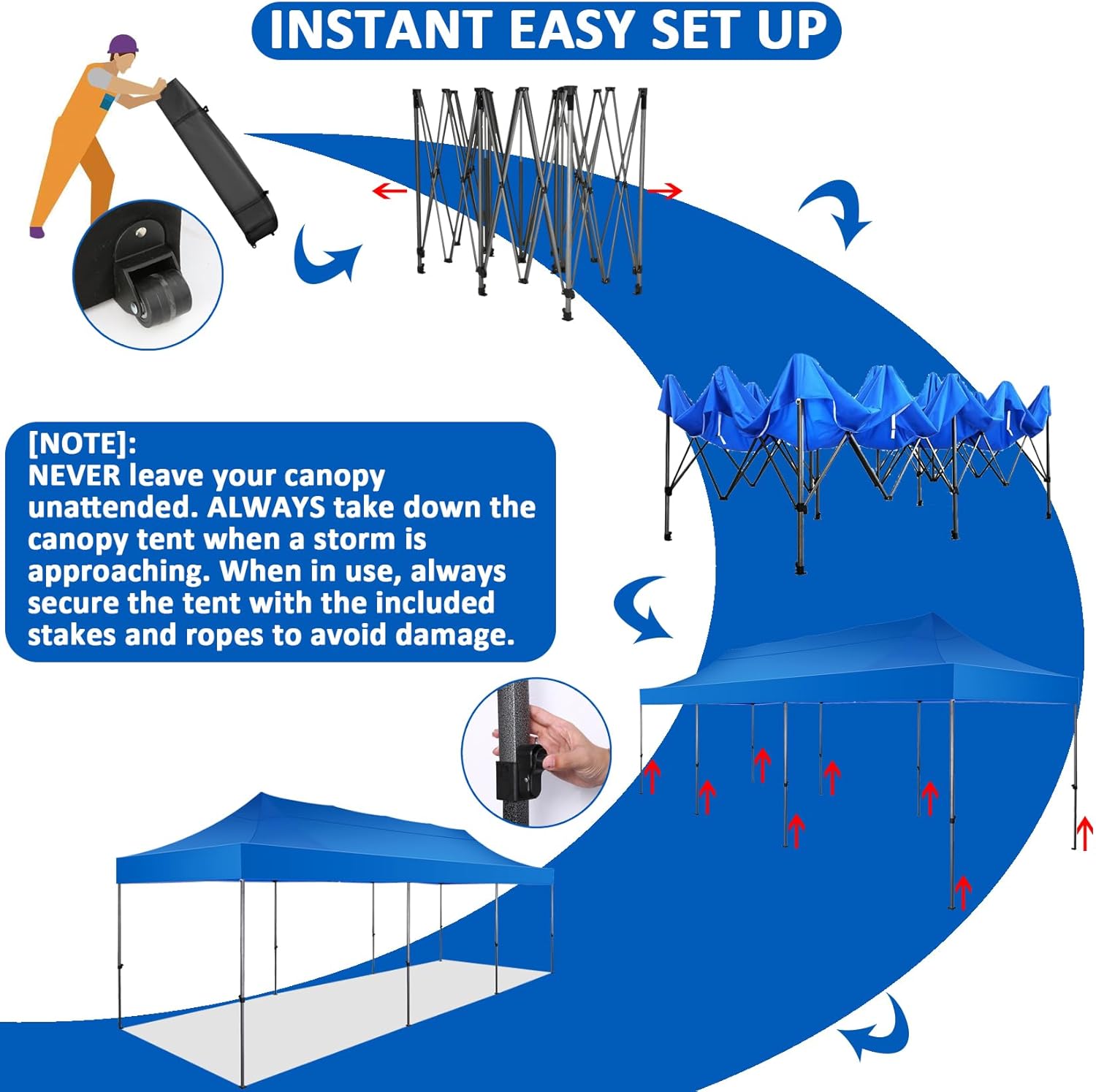 COBIZI 10x30 Pop Up Canopy Without Sidewall,Heavy Duty Canopy UPF 50+ All Season Wind Waterproof Commercial Outdoor Wedding Party Tents for Parties Gazebo with Roller Bag(10 x 30 ft Blue)