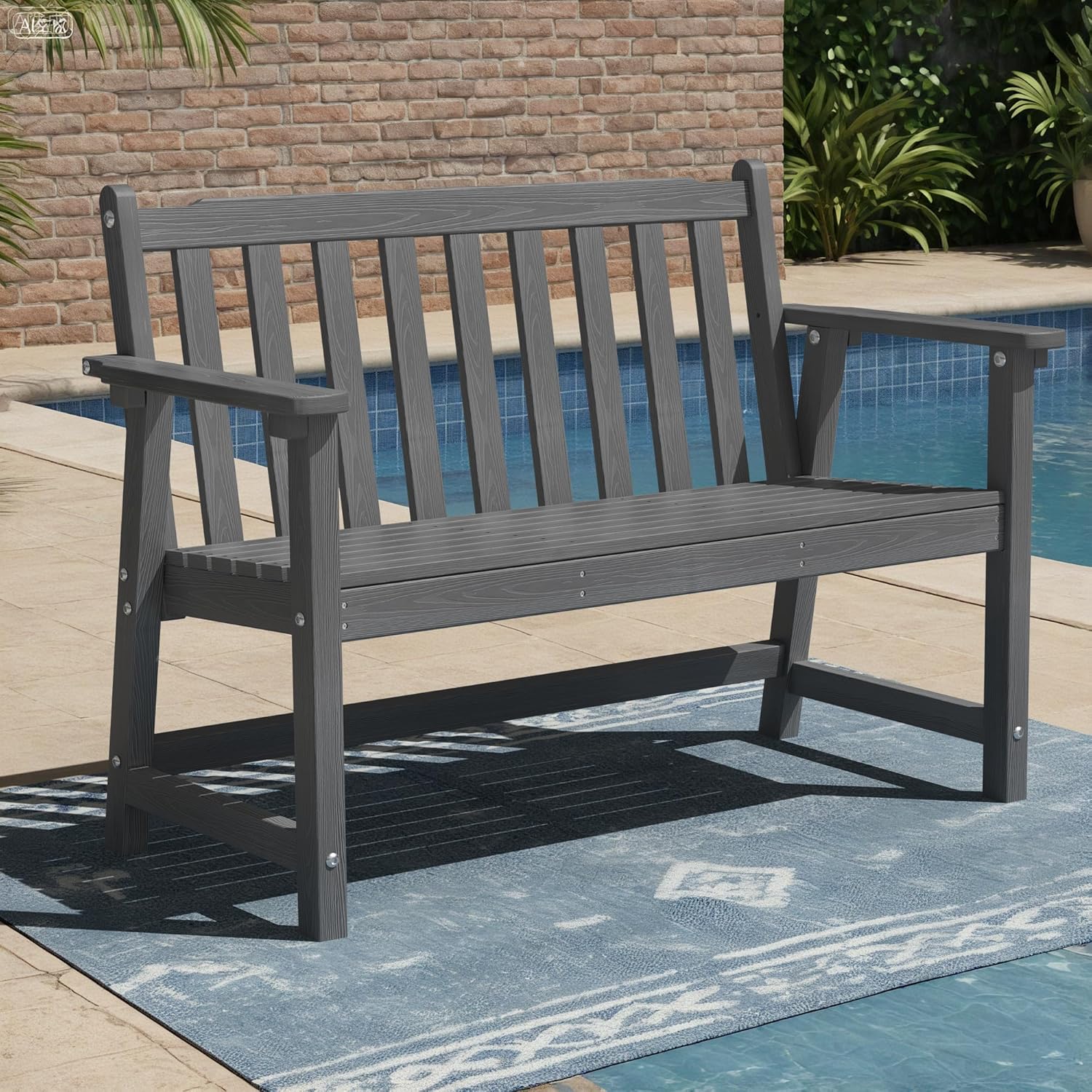 Ciokea 44" Outdoor Bench, HDPE Weatherproof Garden Bench, 2-Person Porch Benches with 550 Lbs, Waterproof Patio Benches for Outside Balcony Deck Backyard, Dark Grey