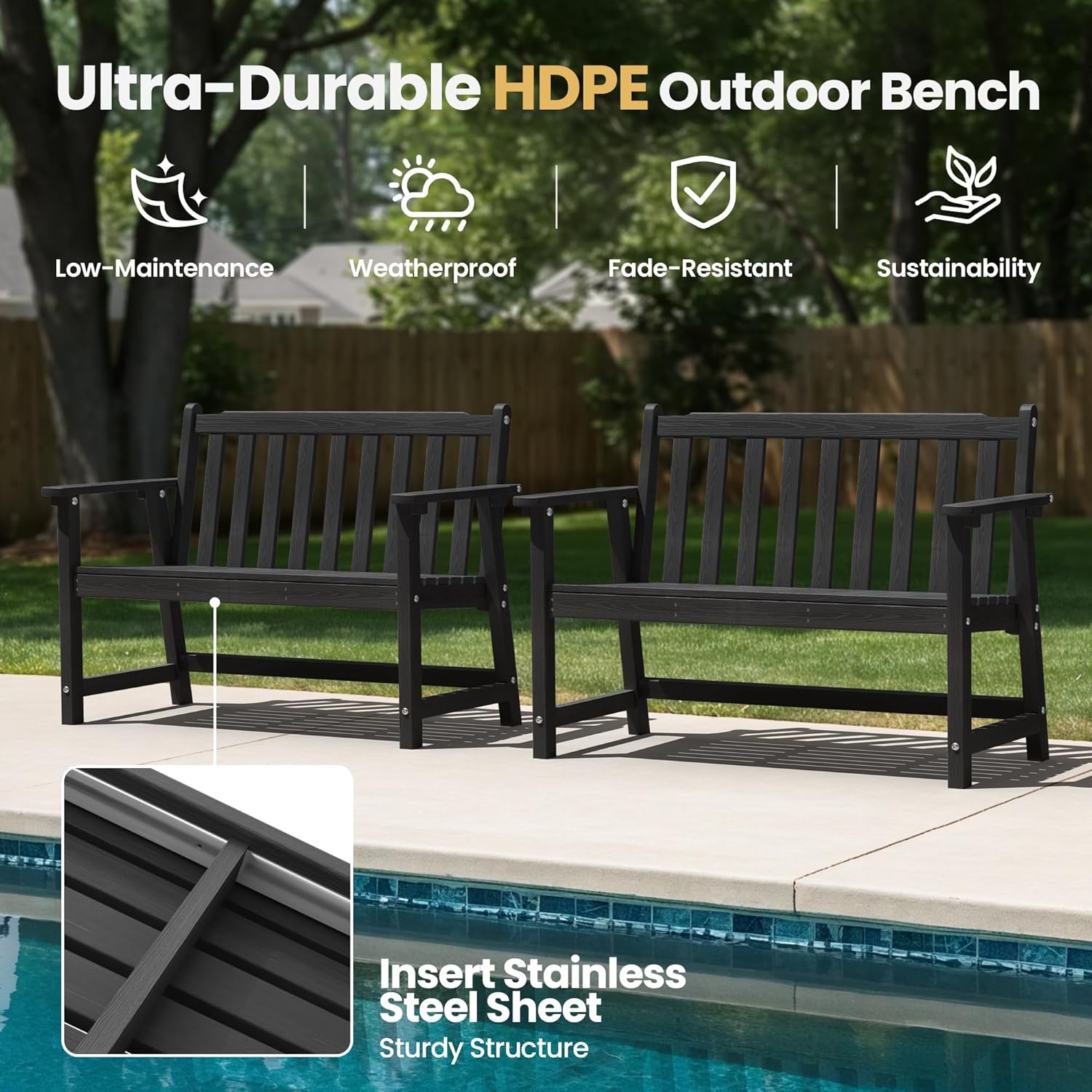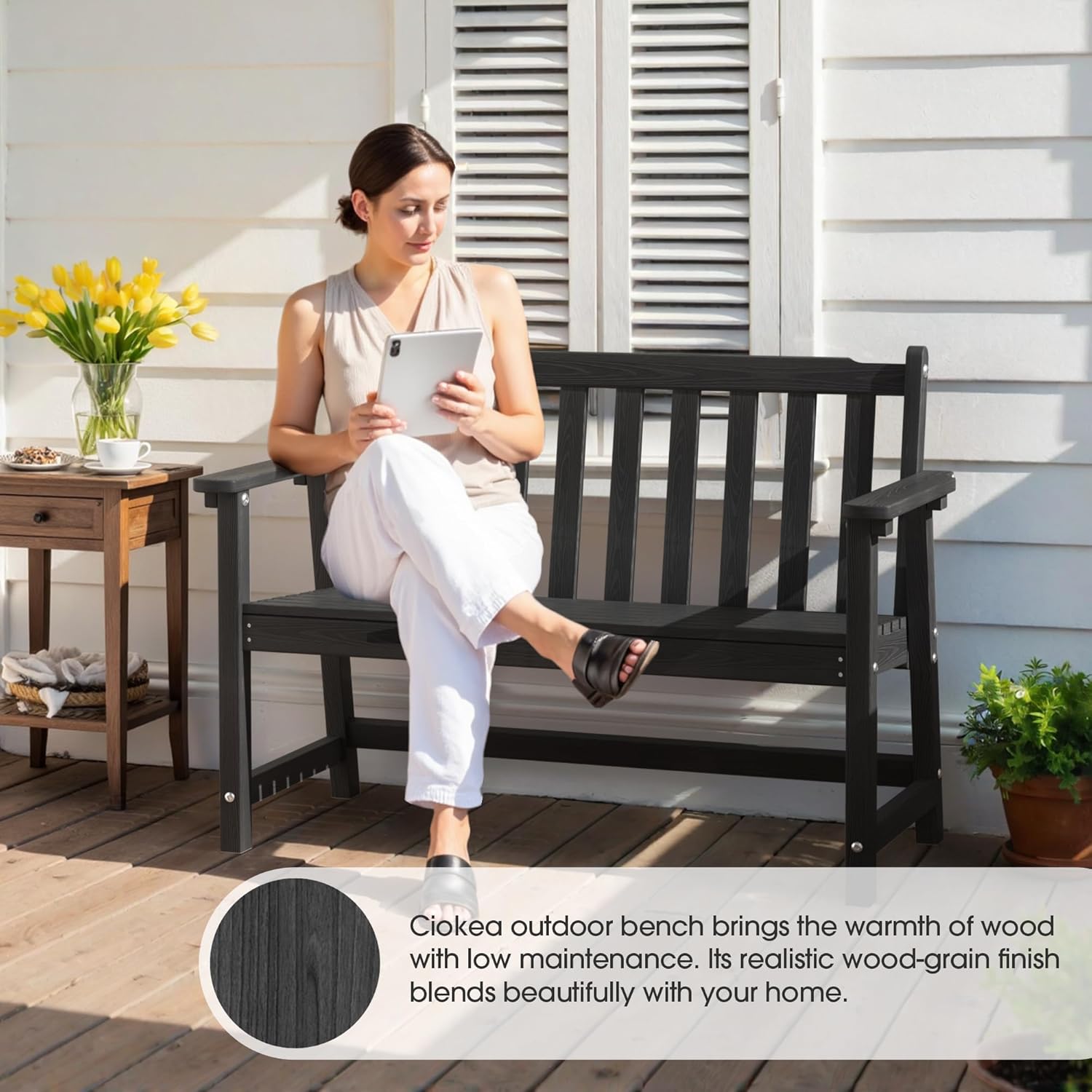 Ciokea 44" Outdoor Bench, HDPE Weatherproof Garden Bench, 2-Person Porch Benches with 550 Lbs, Waterproof Patio Benches for Outside Balcony Deck Backyard, Black