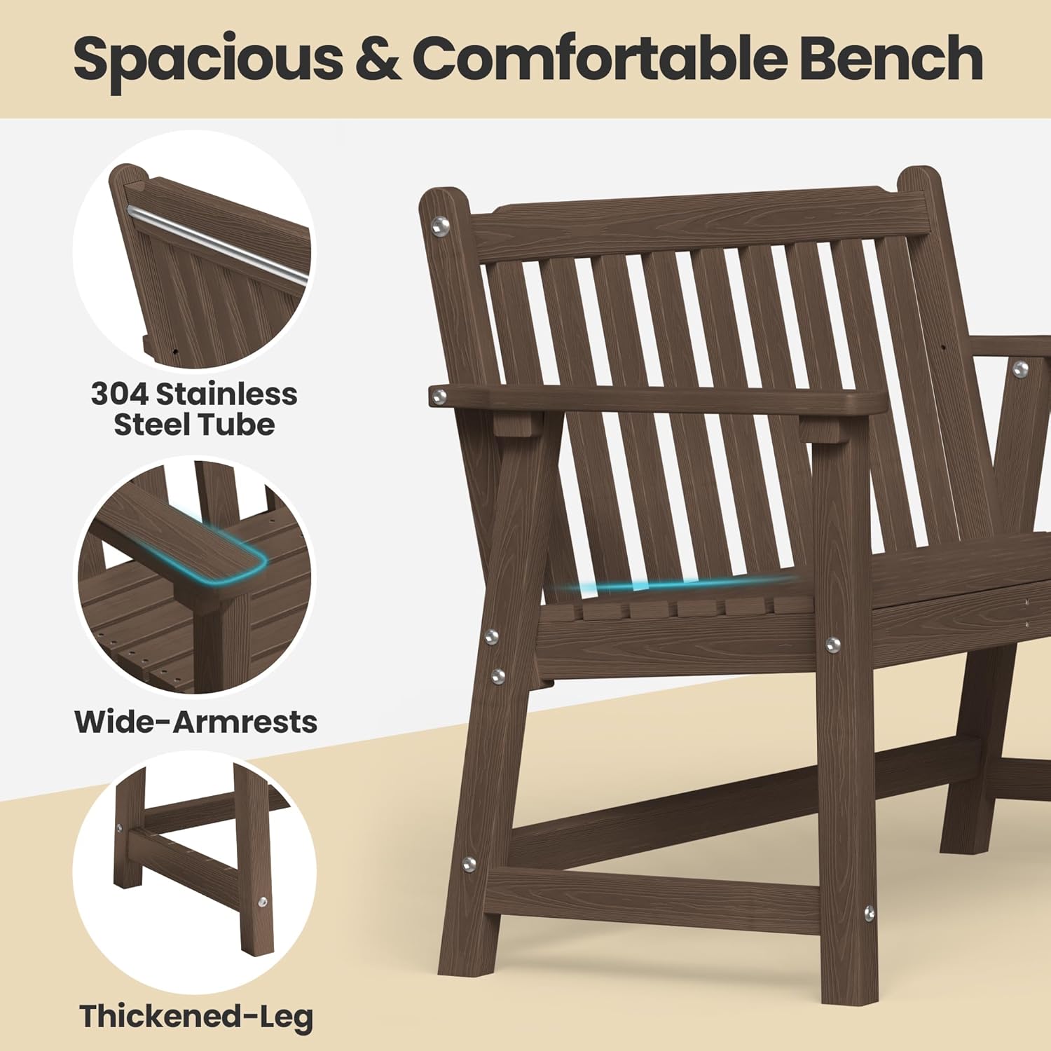 - 【All-Weather HDPE】: Ciokea outdoor bench is constructed from high-density polyethylene (HDPE), ensuring it withstands rain, UV rays, and temperature changes without cracking or rusting