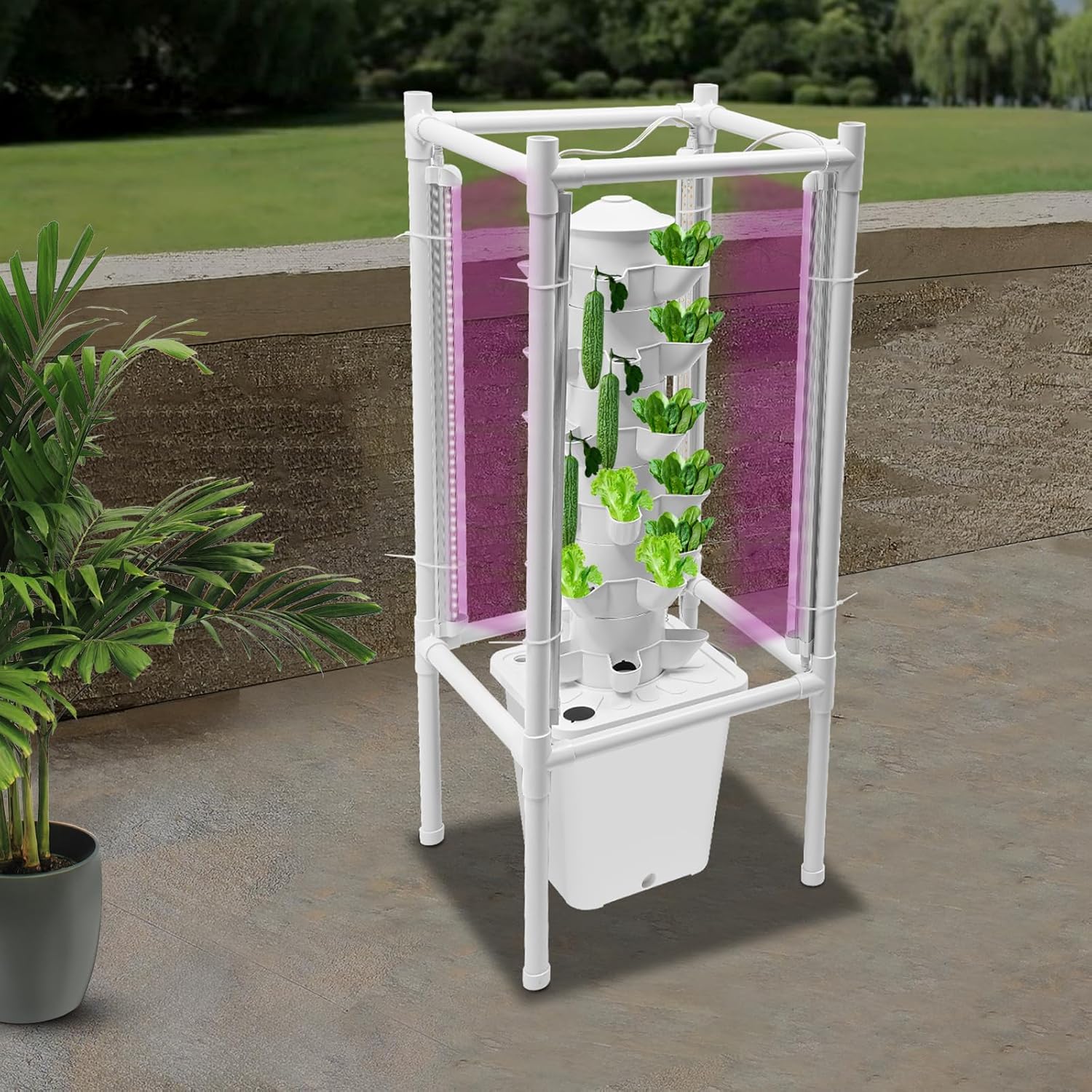 Hydroponics Vertical Growing Kit with Grow Lights 30 Plant Garden Hydroponic Growing System Outdoor Outdoor Indoor Vertical Garden Planter Tower with Automatic Watering for Herbs Fruits Vegetables