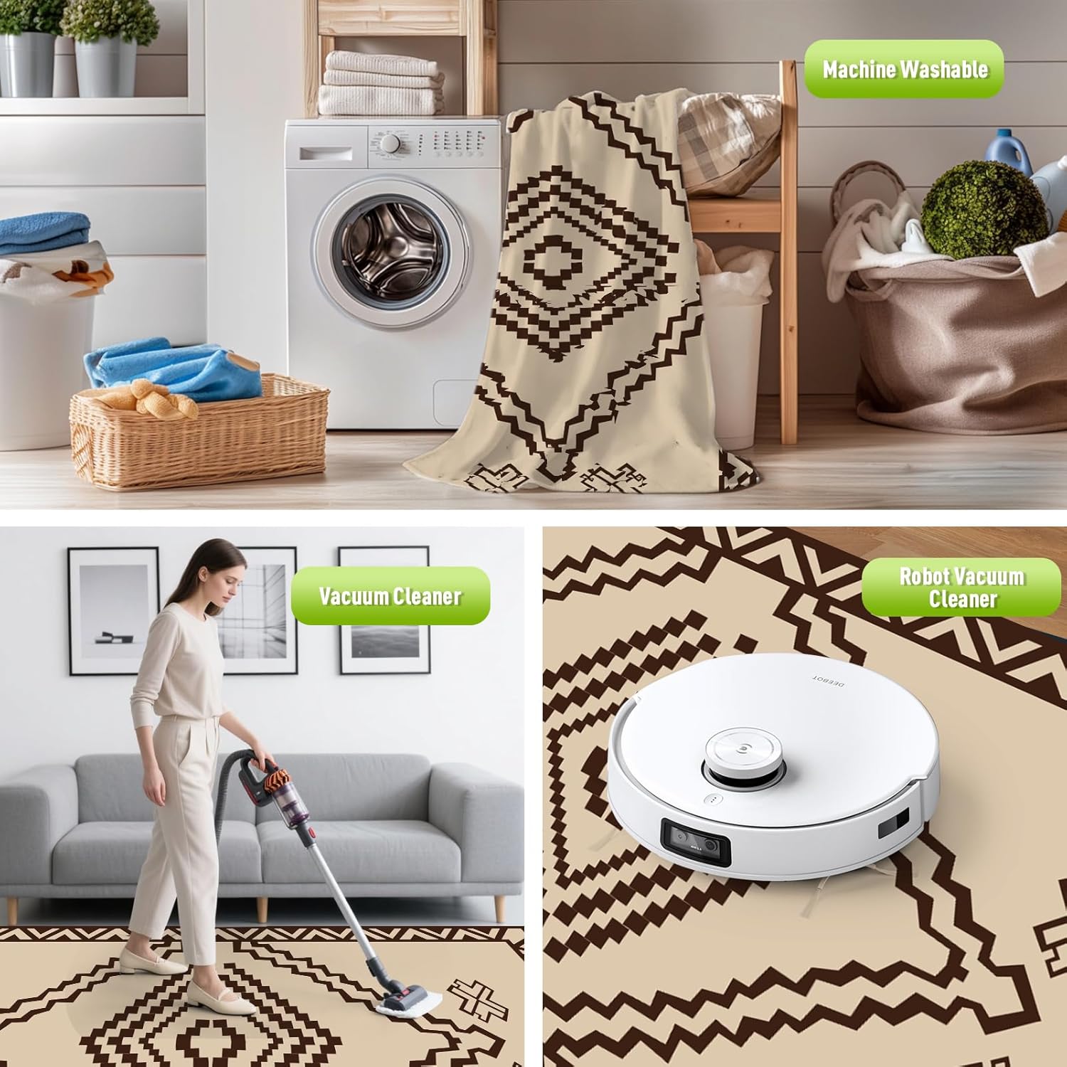 - Stain-Resistant & Easy to Clean: This waterproof, stain-resistant, and quick-drying outdoor rug is made from recycled plastic grass weaving. Dirt, hair, and spills can be easily removed by hosing it down or shaking it off. For deep cleaning, simply wipe it with a damp cloth and mild soapy water, rinse, and let it air dry in minutes
