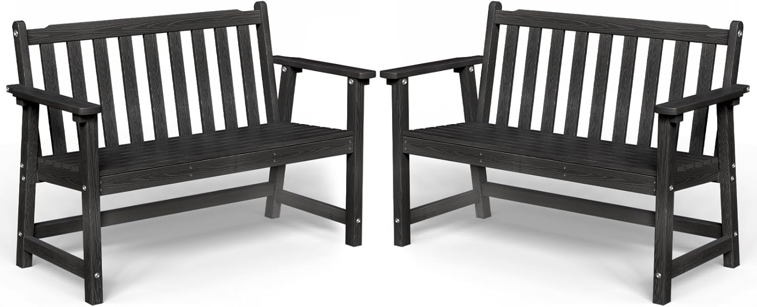 Outdoor Bench, 2-Person HDPE Garden Bench, All Weather Poly Patio Bench for Outdoors, Garden, Backyard, Porch and Park, 550 lbs Weight Capacity, Black, 2 Pack