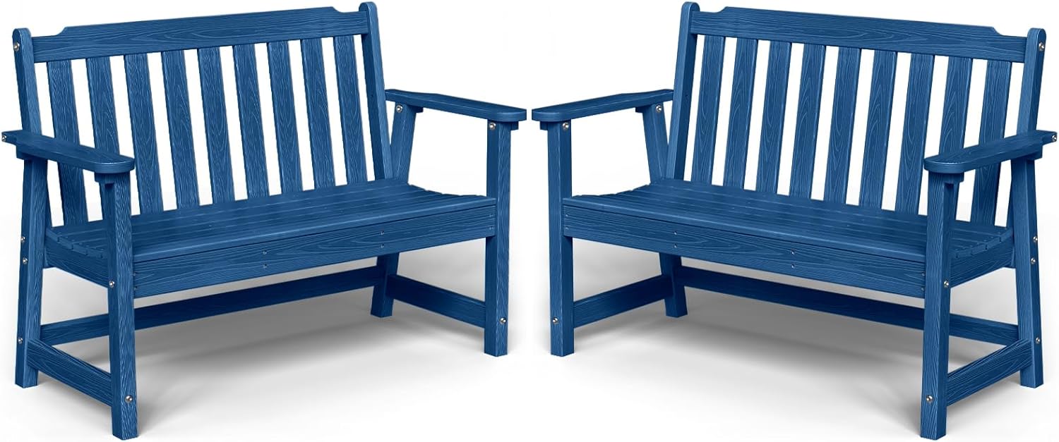 Outdoor Bench, 2-Person HDPE Garden Bench, All Weather Poly Patio Bench for Outdoors, Garden, Backyard, Porch and Park, 660 lbs Weight Capacity, Navy Blue, 2 Pack