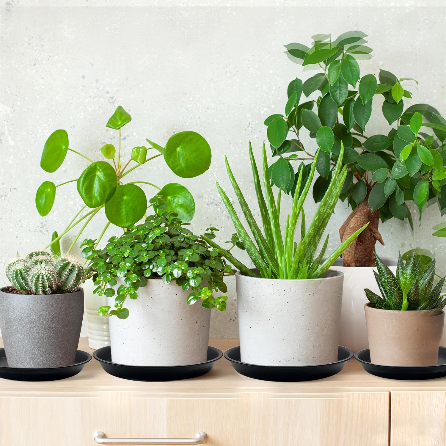 - 【Protects Surfaces】 Effectively collects excess water and soil, preventing water stains, dirt, and scratches on wooden floors, rugs, tabletops, patios, or balconies. Keeps your home and garden tidy.