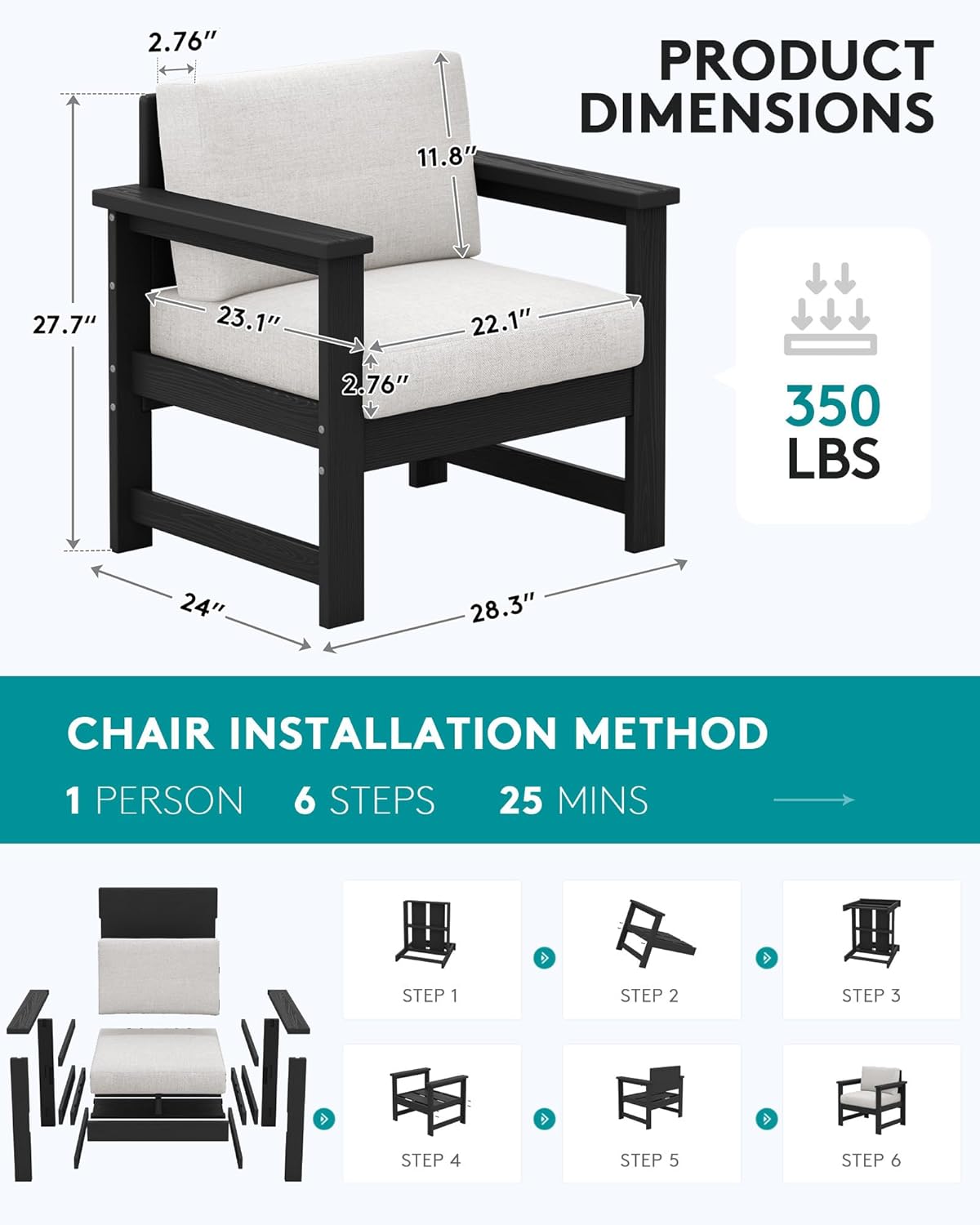 - One-Size-Fits-All : SERWALL 2-seater outdoor sofa measured 51.9''L x 24.0''W x 24.8''H,single-seater sofas measured 28.3''L x 24.0''W x 24.8''H. Each seat can hold up to 350LBS. The universal size ensures comfort, allowing you to enjoy tranquil moments in your garden or patio.