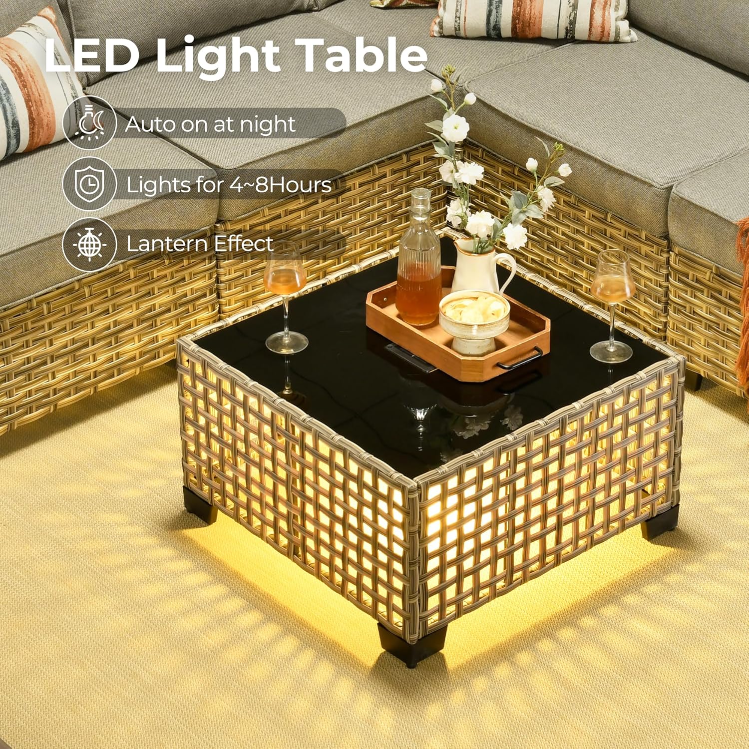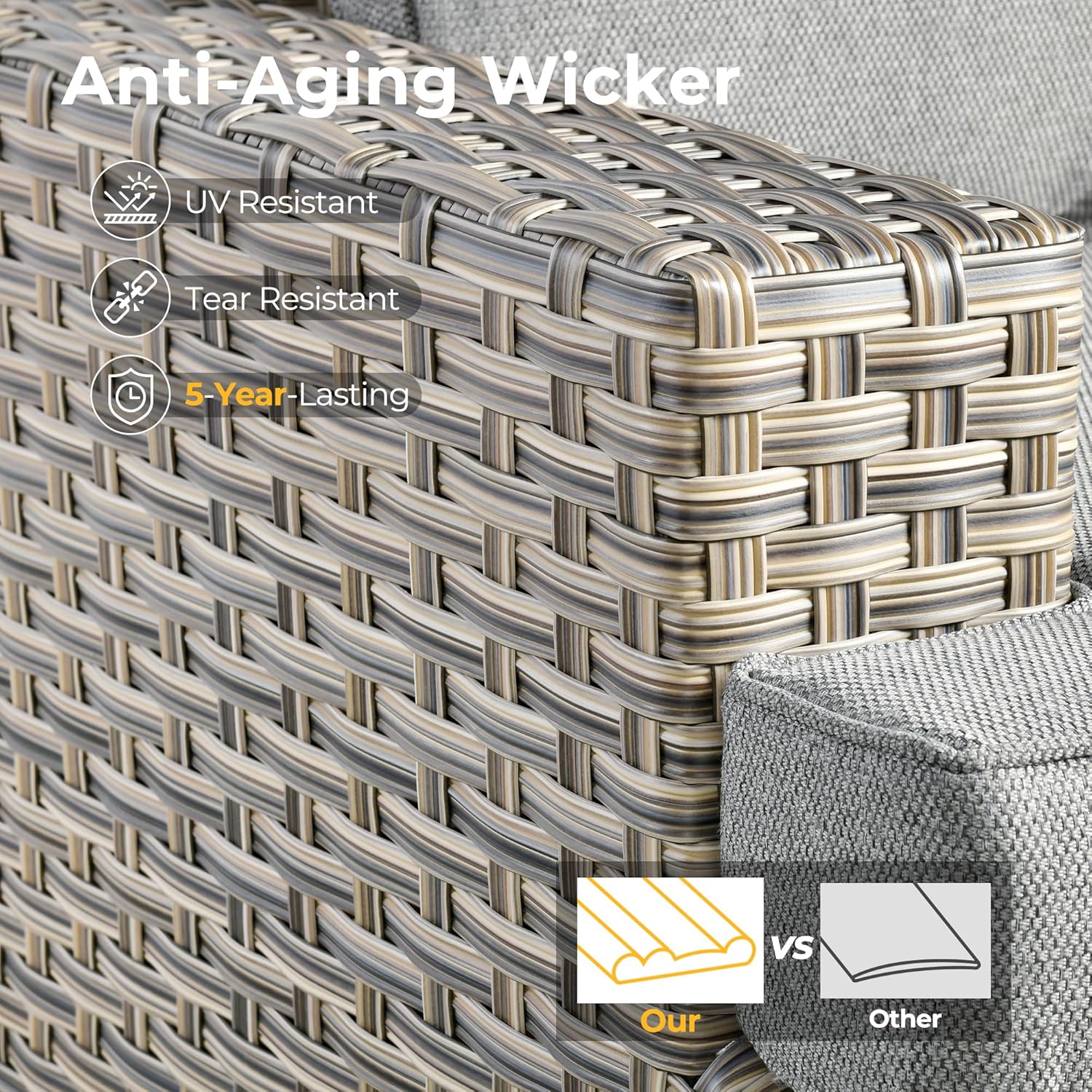 - All Weather & Durable: Selected anti-ageing treated thicken PE wicker rattan for UV resistant, wear resistant and all weatherproof. 3D strengthen and widen design for extended service life,twice service life as others