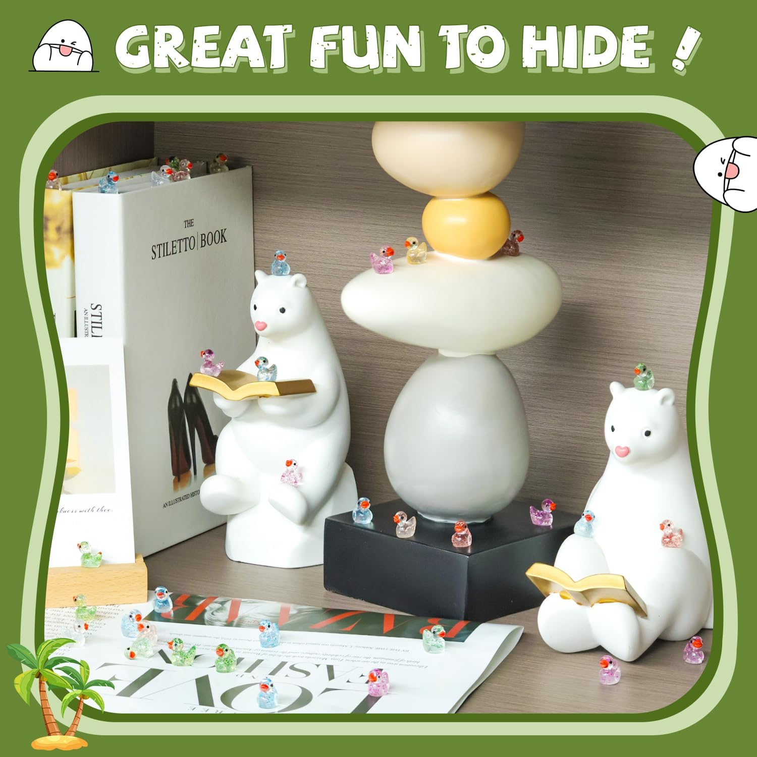 - PACKAGE CONTENT -- One Package includes 200 pcs colorful giltter mini ducks, each tiny figure is crafted with intricate details and vibrant colors, making them cute and eye-catching.Use them to add charm for crafting, or having hide games to enhance fun