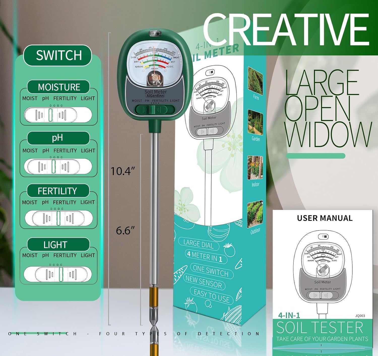 - Easy Storage & Worry-Free Service: Soil pH Tester for plants has a portable design, when you are not using it, you can put it in a storage box or put it in the drawer. AiGerdinn provides 24-hour friendly customer service. Please feel free to let us know, if you have any issues with the 4-in-1 soil moisture meter