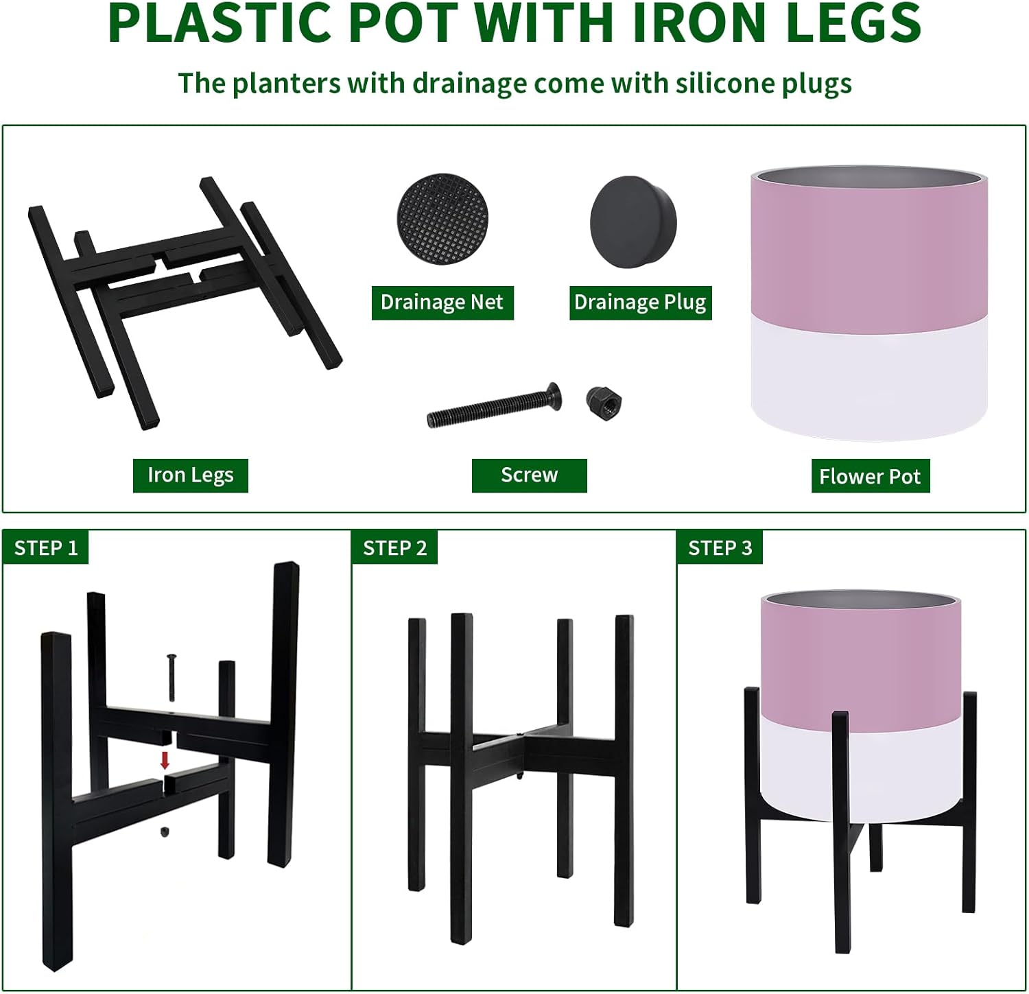 - 【Modern Metal Stand Design】 Each pot includes sturdy black metal legs that elevate your plants, creating a modern, stylish display while enhancing ventilation.