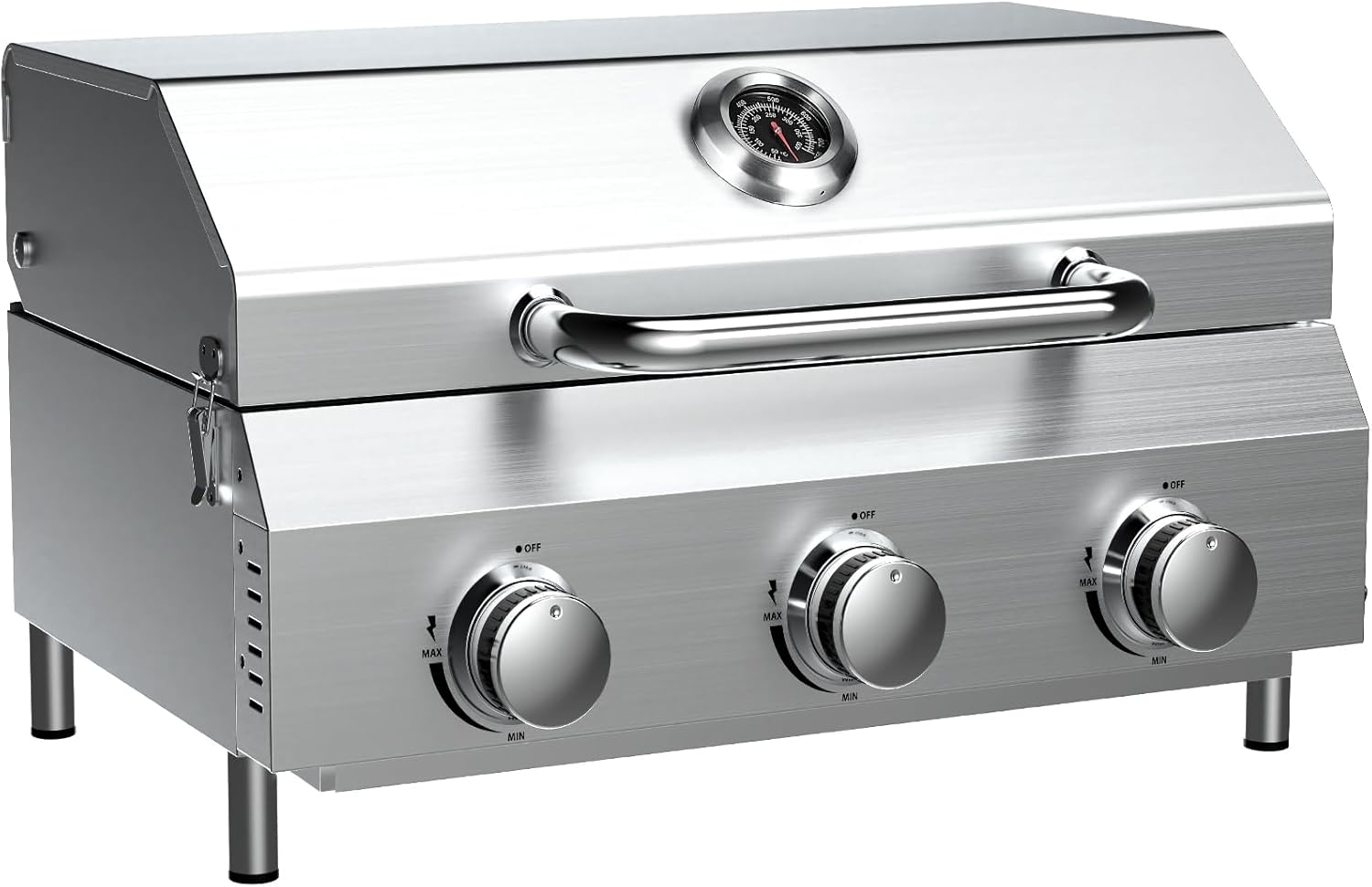 - ☘️【Triple Burner Powerhouse】 Unleash 30,000 BTU grilling force with 3 independent burners. Achieves rapid searing and even heat across the 24-inch thickened stainless steel cooking grate – upgraded for superior heat retention, warp resistance, and heavy food support. Perfect for multi-zone cooking (sear/roast/warm) and feeding crowds. Reduced flare-ups and faster results, whether cooking burgers or brisket.