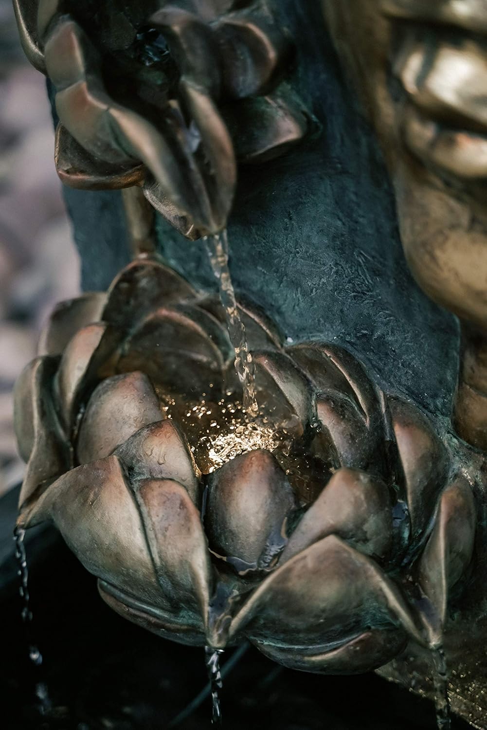 - BUDDHA WATER FOUNTAIN WITH LED LIGHTS: Create an inviting atmosphere both day and night with this freestanding Buddha face water fountain, enhanced by the soothing sound of cascading water and warm LED lights, perfect for indoor or outdoor decor