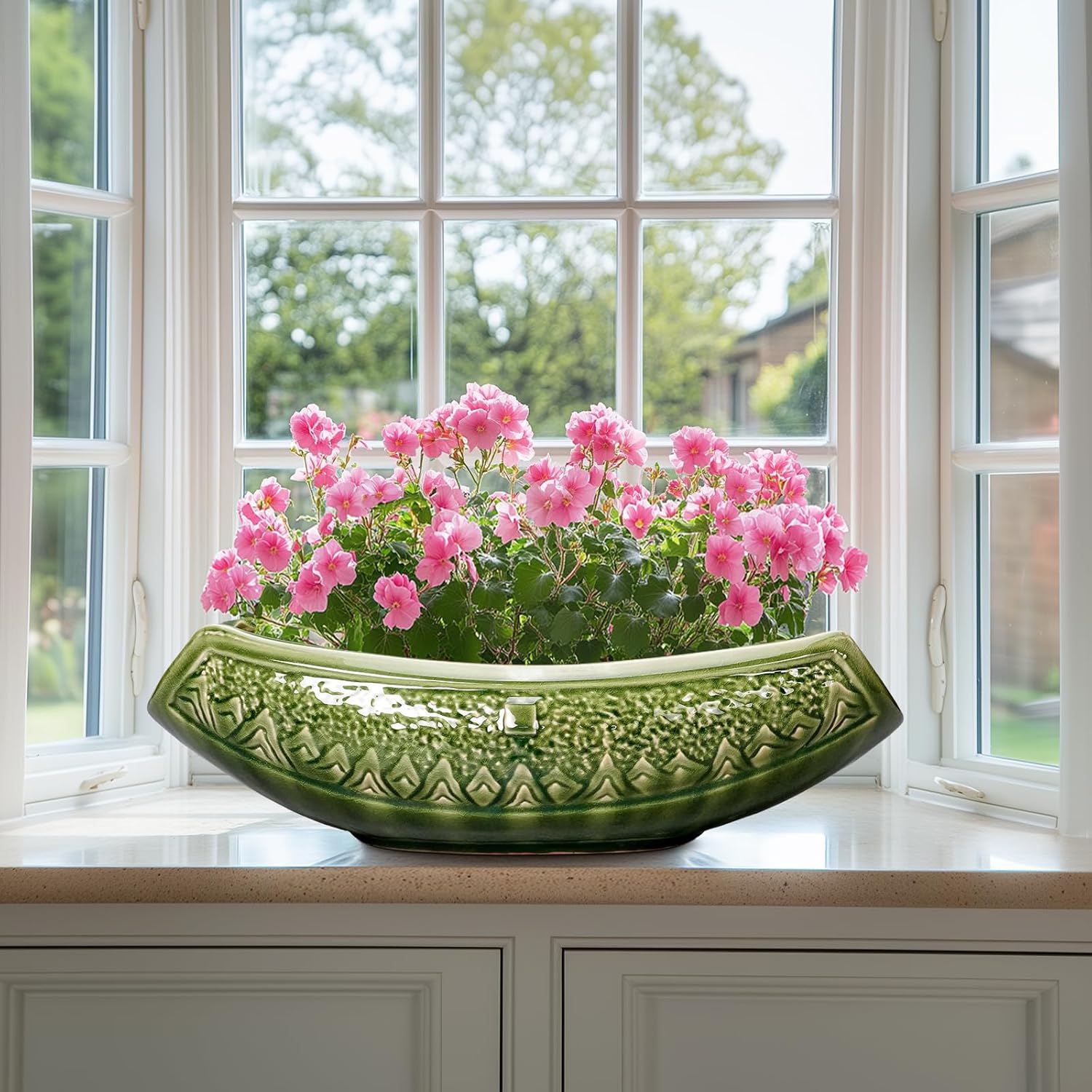 - Elegant Aesthetic: Featuring a beautiful green ice crackle glaze finish and 3D relief pattern, this bonsai pots combines practicality with style, suitable for table, desk, windowsill, shelves, living room, bedroom, bathroom, porch, study, office, patio, balcony, zen garden, any indoor or outdoor space