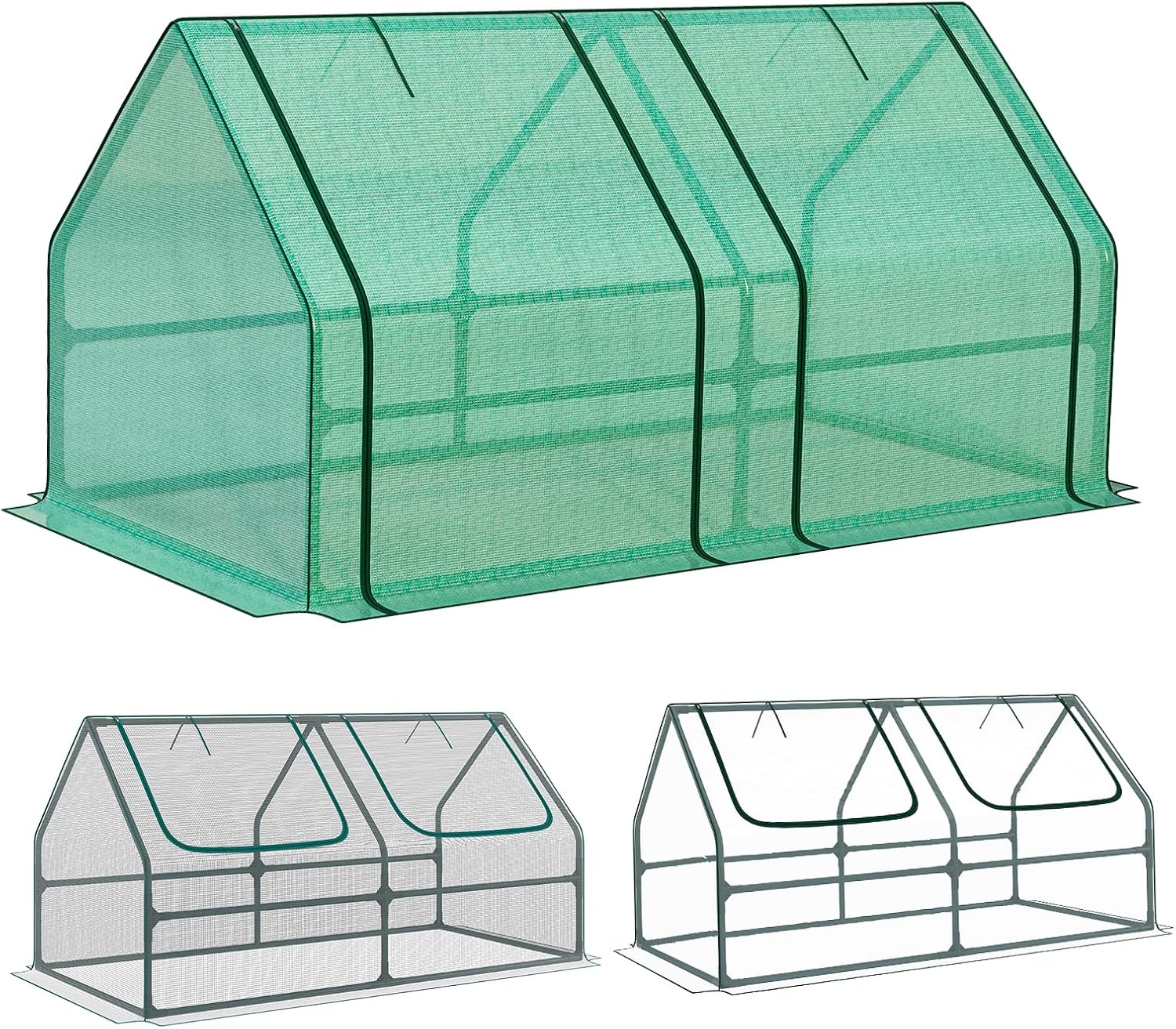 - Sun-Shielding Cover: The green PE mesh cover is ideal for summer. It blocks harsh sunlight while allowing airflow, creating a cooler environment for your plants. A full-open roll-up zippered door ensures easy access and excellent ventilation