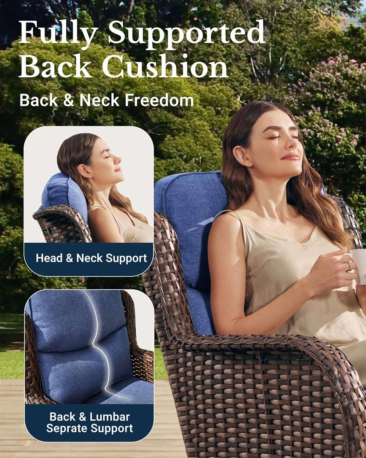 HILLGA Luxury Patio Furniture Set with 6-Inch Thick Cushions, High Back Outdoor Swivel Rocker Chairs and Patio Loveseat, 5-Piece All Weather Conversation Set for Porch Deck Pool Yard, Blue (V3)