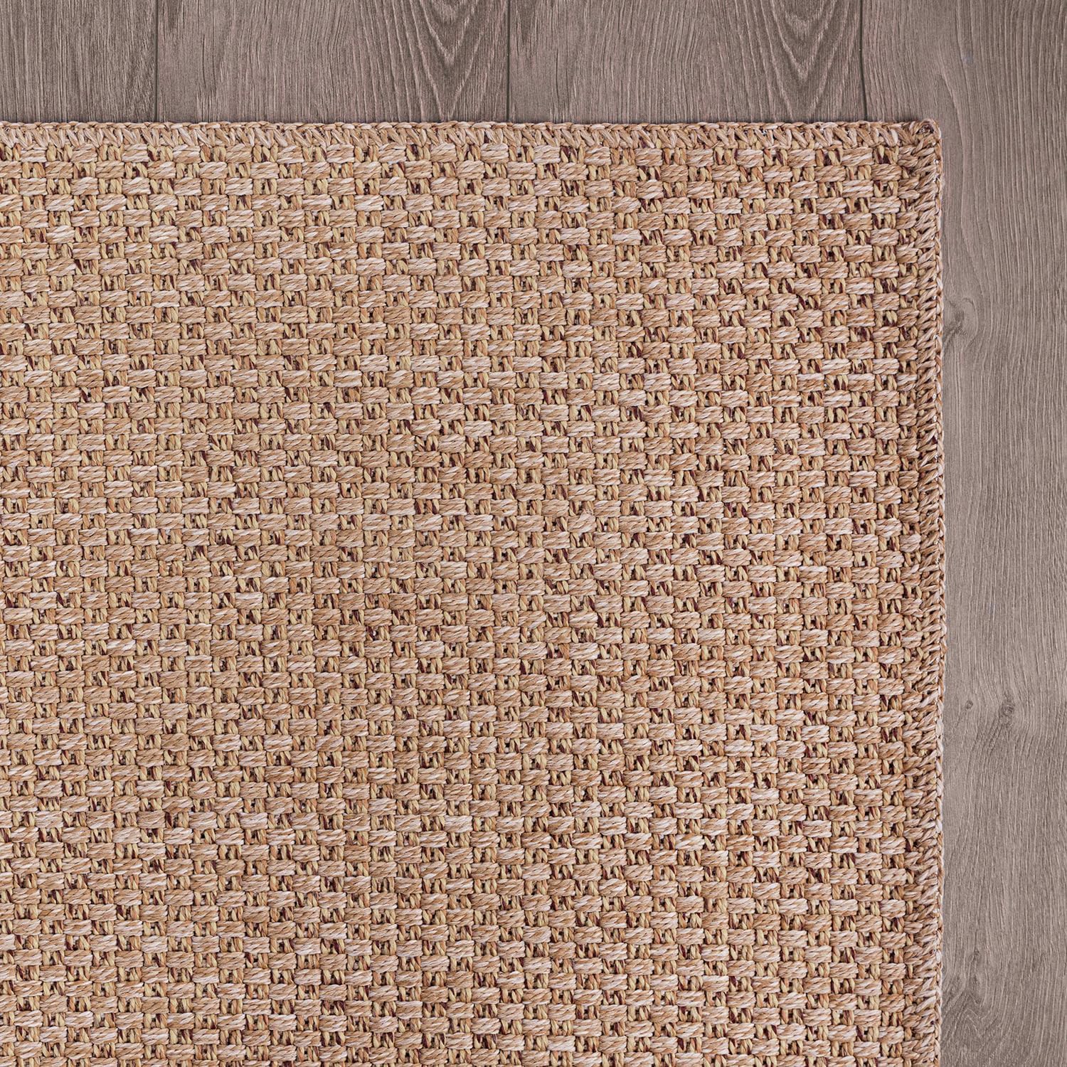 - [ EASY JUTE RUG ] Experience the enchantment of a resilient rug mimicking the appearance of natural jute, courtesy of our latest Easy-Jute rugs. (Jute-free in reality) Crafted from secure polypropylene, these rugs are resistant to cracking, ensuring they remain free from scratches, shedding, or unraveling over time.