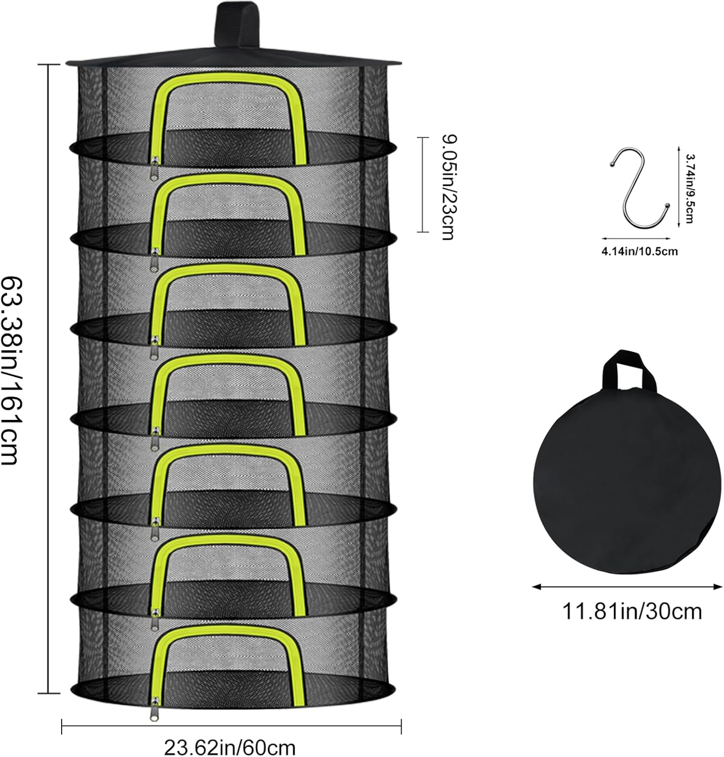 - Size and Usage: There are 1-8 layers of herb drying racks to choose from, with the 7 layer measuring 23.6 x 23.6 x 60.62 inches. 7 layer drying net can dry of plants, flowers, buds, bulbs, fishes, weeds, clothes, jerky, meat, food, basil, vanilla, onion, garlic, cinnamon, nuts, and etc
