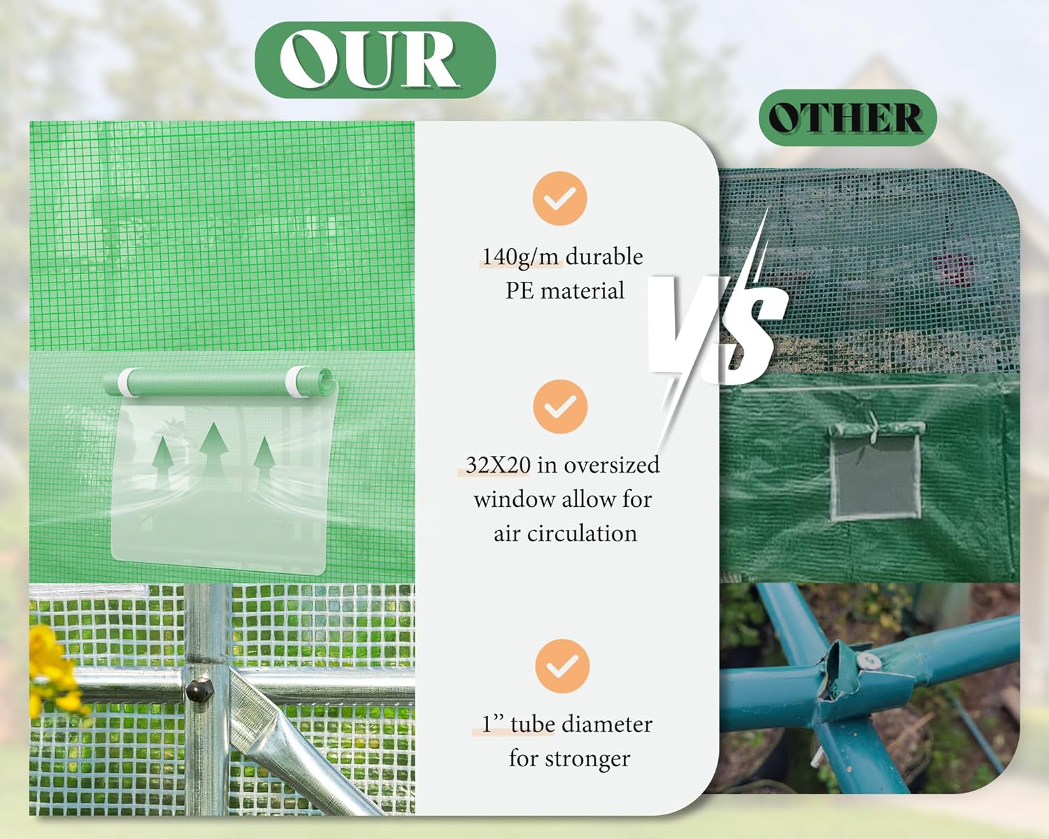 - Upgraded Frame: Greenhouse made of upgraded and thickened galvanized steel frame, withstanding environmental elements such as wind, rain, and snow, providing a secure environment for plants