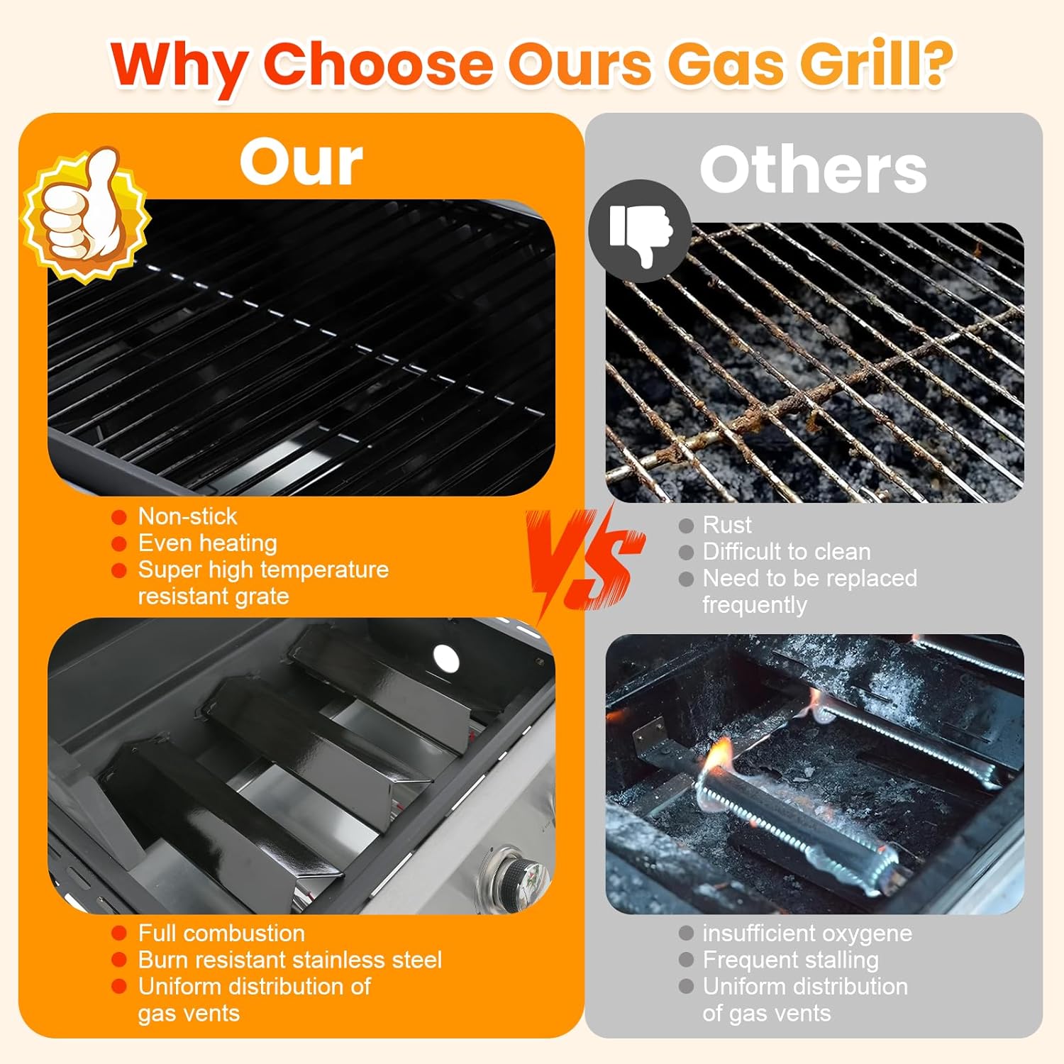 - 🏡 Versatile for Any Outdoor Setting - Perfectly suited for patios, balconies, gardens, or backyards, this propane gas grill brings versatility to your outdoor cooking game. Whether it’s a summer barbecue or a fall cookout, enjoy delicious meals with friends and family all year round in any outdoor space.