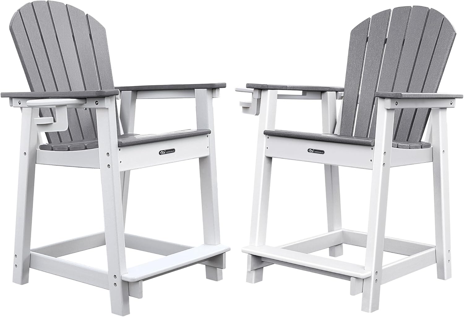Tall Adirondack Chairs Set of 2, Adirondack Barstools, Weather Patio Garden Pool Fire Pit Balcony Outdoor Bar Stools HDPE Plastic Barstools with Backs for Garden, Backyard, Yard (Grey)