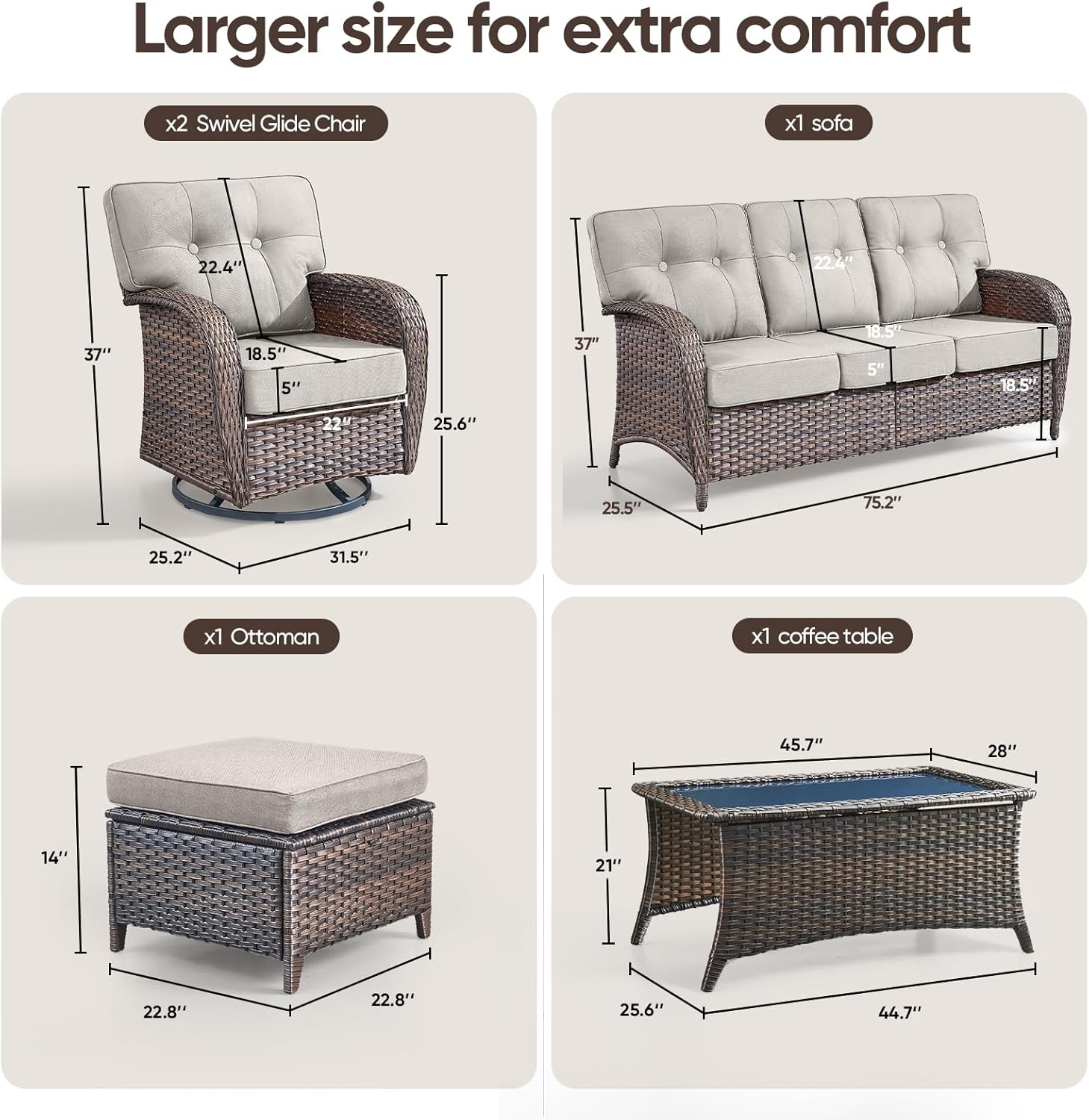 - Color : Brown Rattan | Beige Cushions