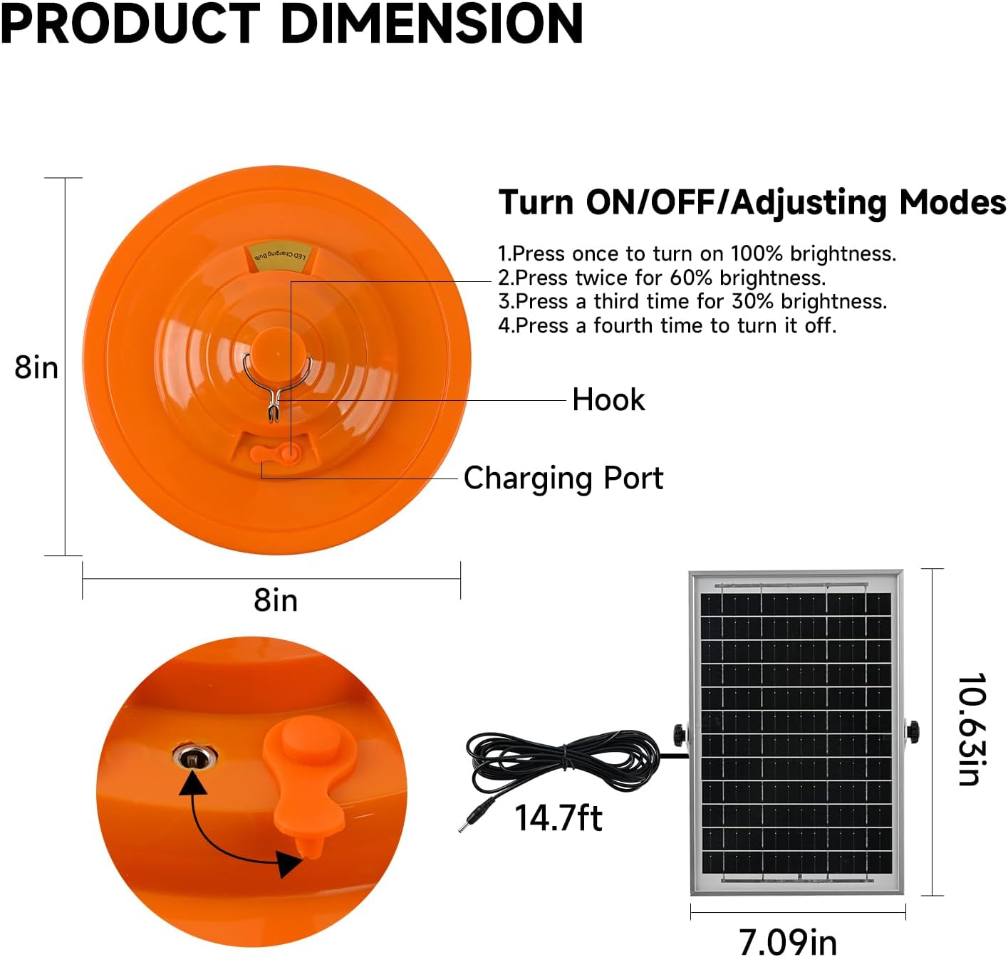- 【Remote Control & Time Setting】The solar hanging plant light are easily controlled by a remote and the button on the top of the bulb. You can also set a timer for 3/5/8 hours and adjust 3 different brightness modes (30%, 60%, 100%) via the remote control. Meanwhile, excellent heat dissipation ensures plants don't get overheated when exposed to prolonged light, providing a safe environment for them.