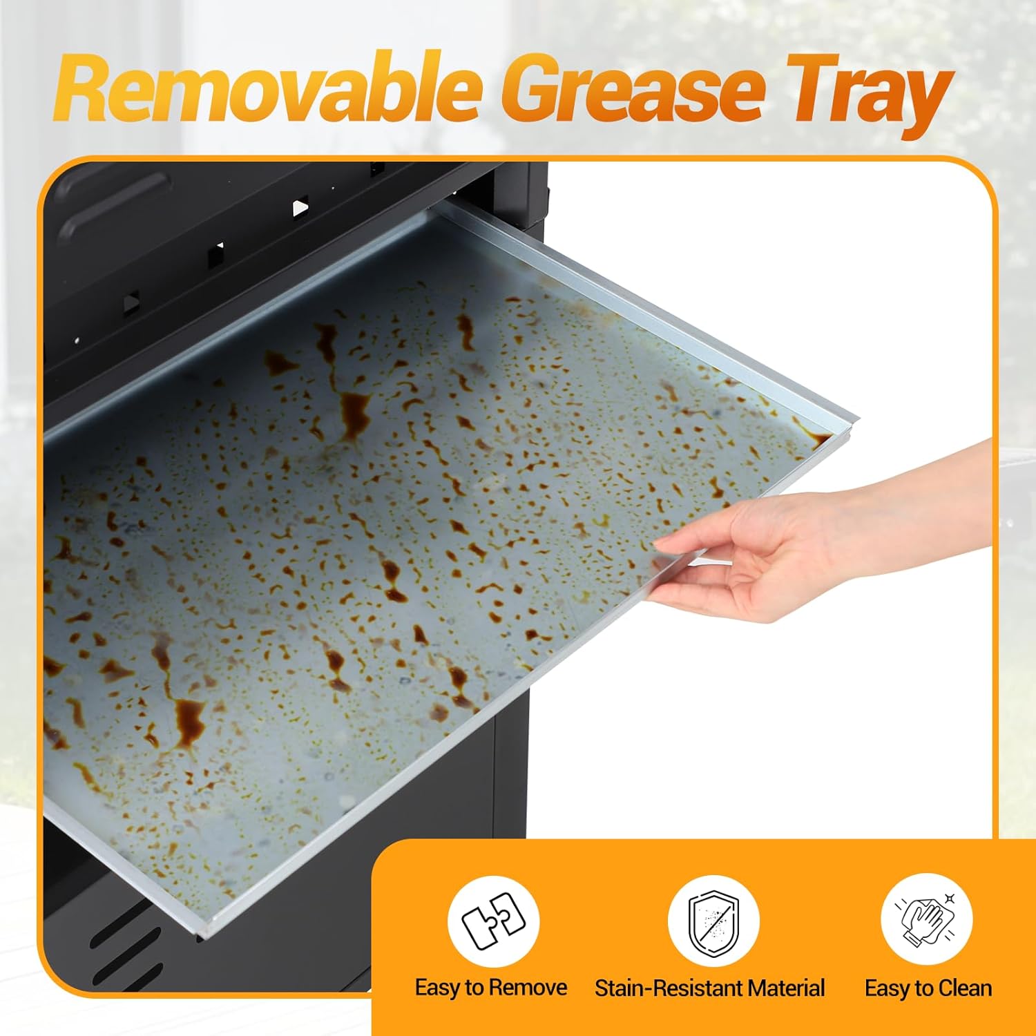 - Removable Grease Tray + Bonus Grill Brush: Enjoy hassle-free maintenance with the removable grease tray that catches drips and grease while you cook. Cleaning is a breeze โ and to make it even easier, weโve included a durable grill brush to help you scrub the grates spotless after every cookout.