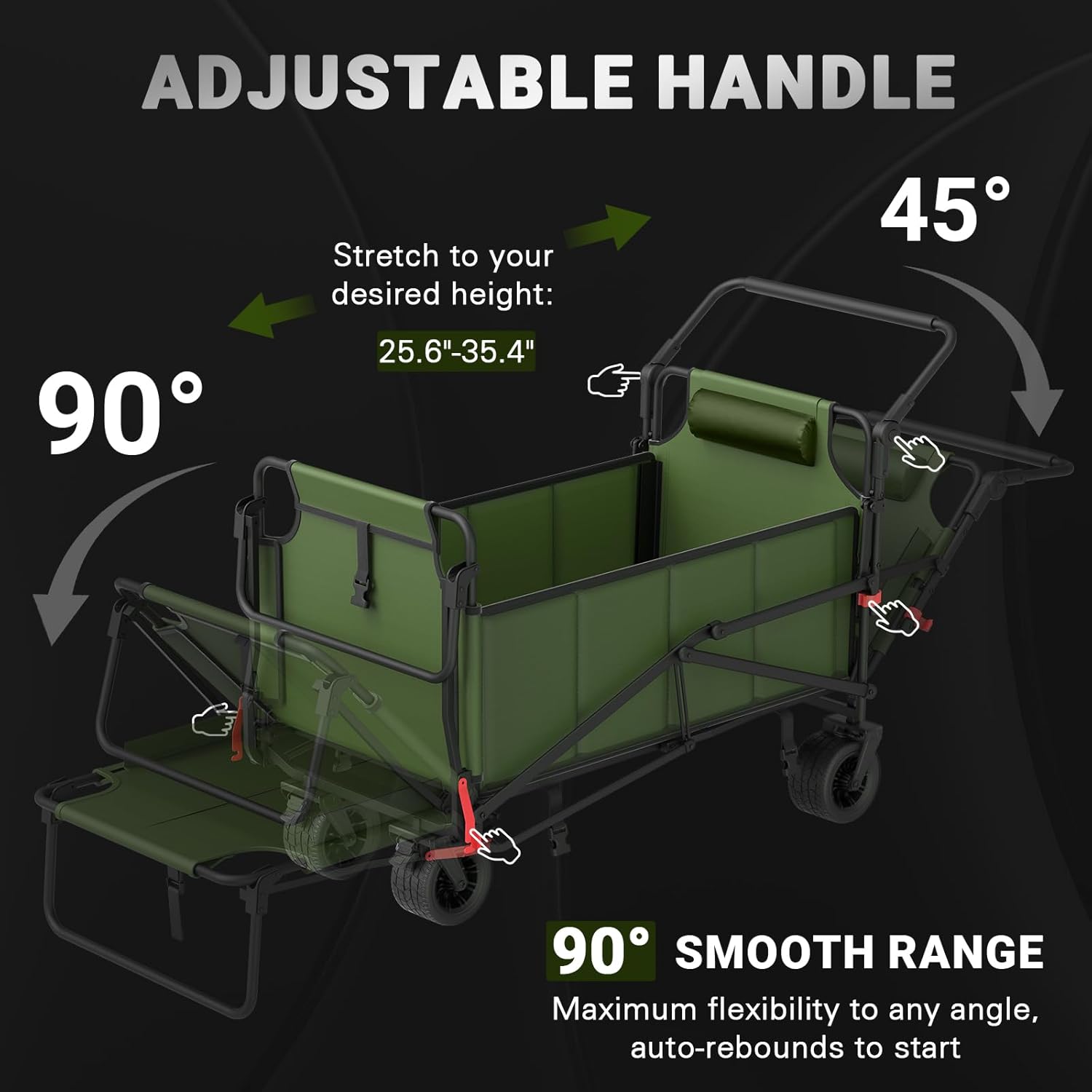 LEVELEVE Heavy Duty Folding Wagon - 2-in-1 Collapsible Cart, 650lb Capacity, All-Terrain Wheels w/Brakes & Side Pockets (Army Green)