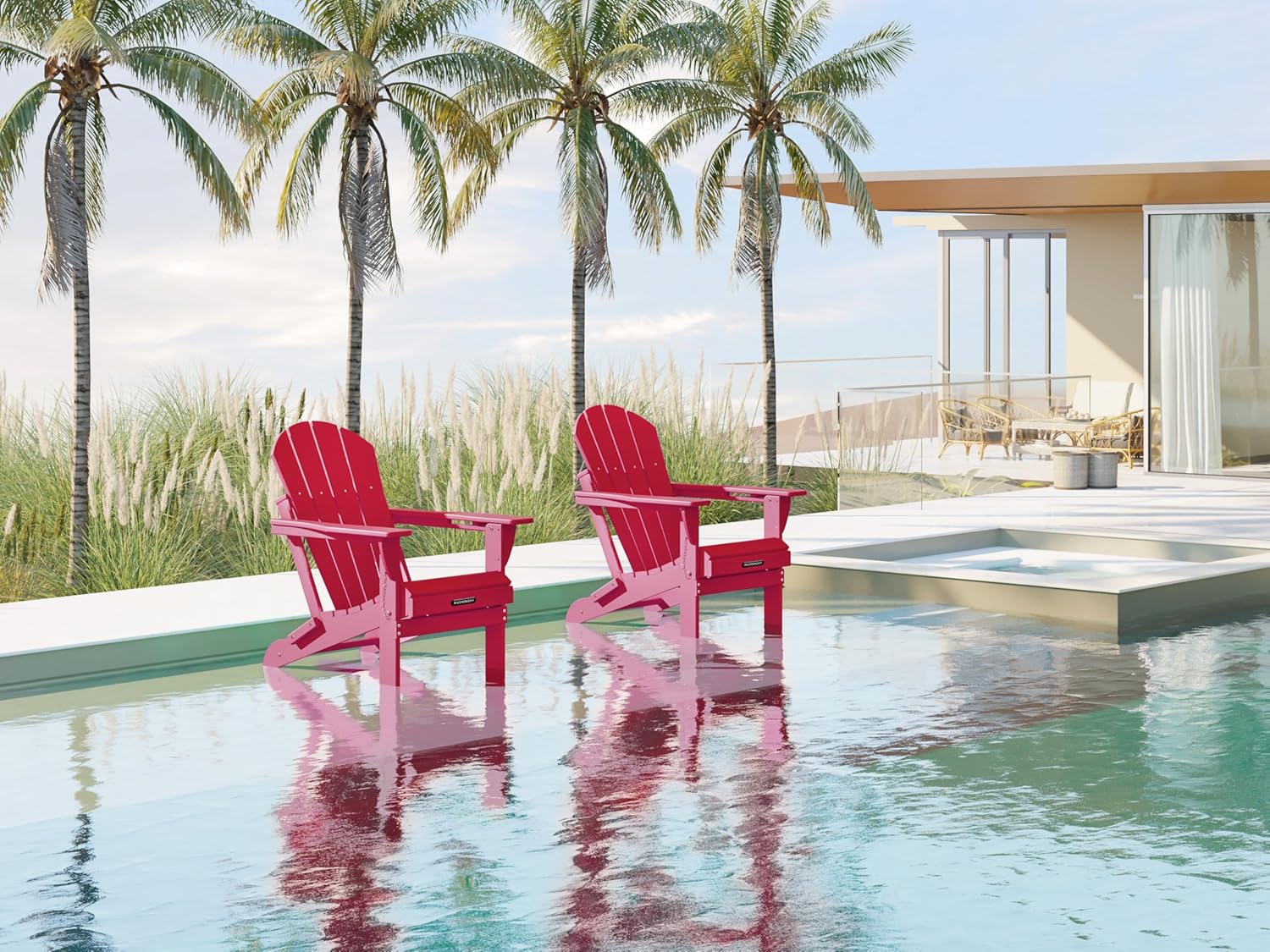 MUCHENGHY Folding Adirondack Chairs Set of 4, Patio Chairs, Lawn Chairs, Outdoor Chairs, Adirondack Chair Plastic, Fire Pit Chairs, Weather Resistant with Cup Holder for Deck, Backyard, Garden(Red)