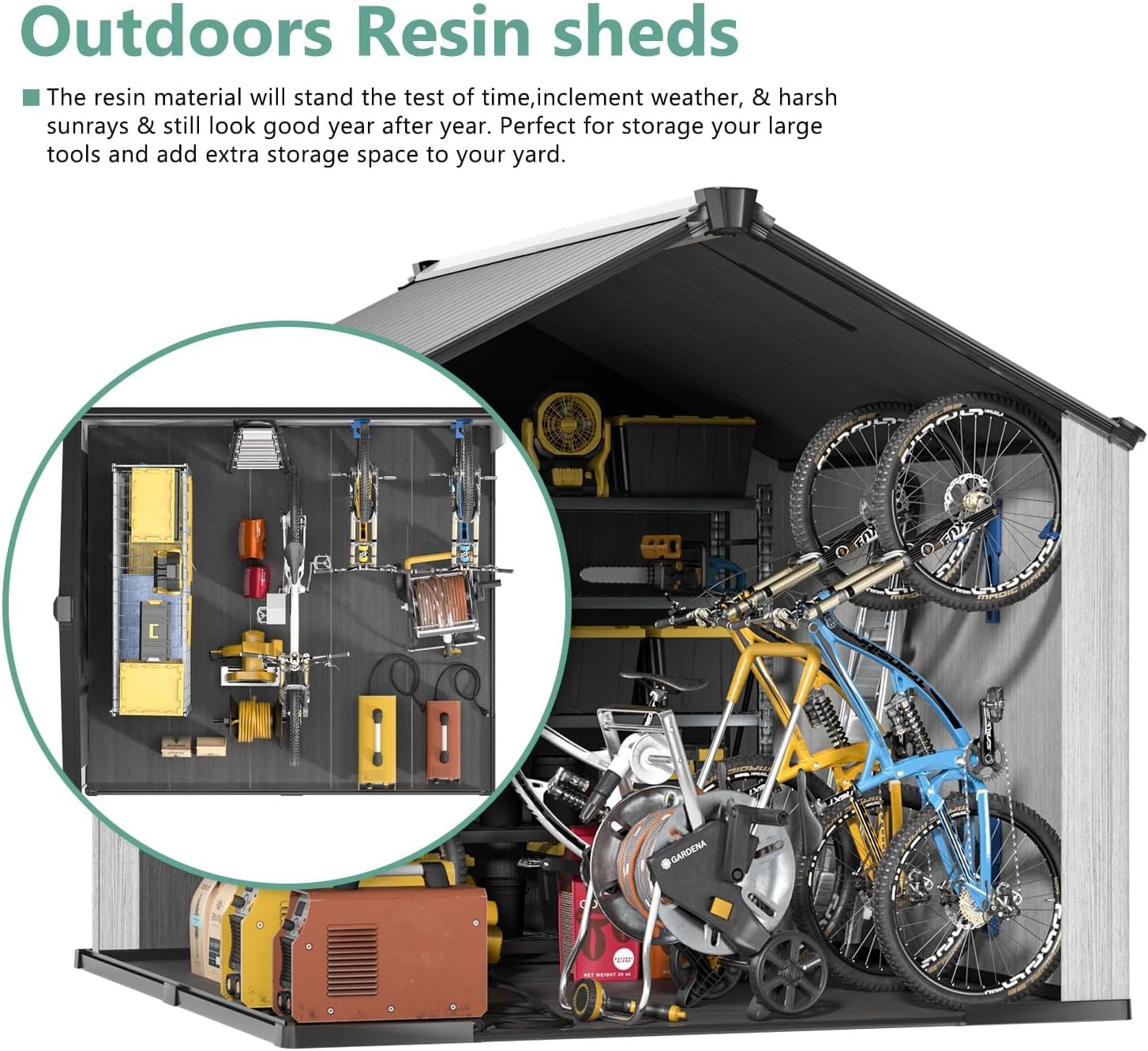 Aoxun 10X8FT Outdoor Shed with Floor, Resin Storage Shed with Lockable Door, Garden Utility Tool Shed Storage House for Backyard, Patio, Lawn