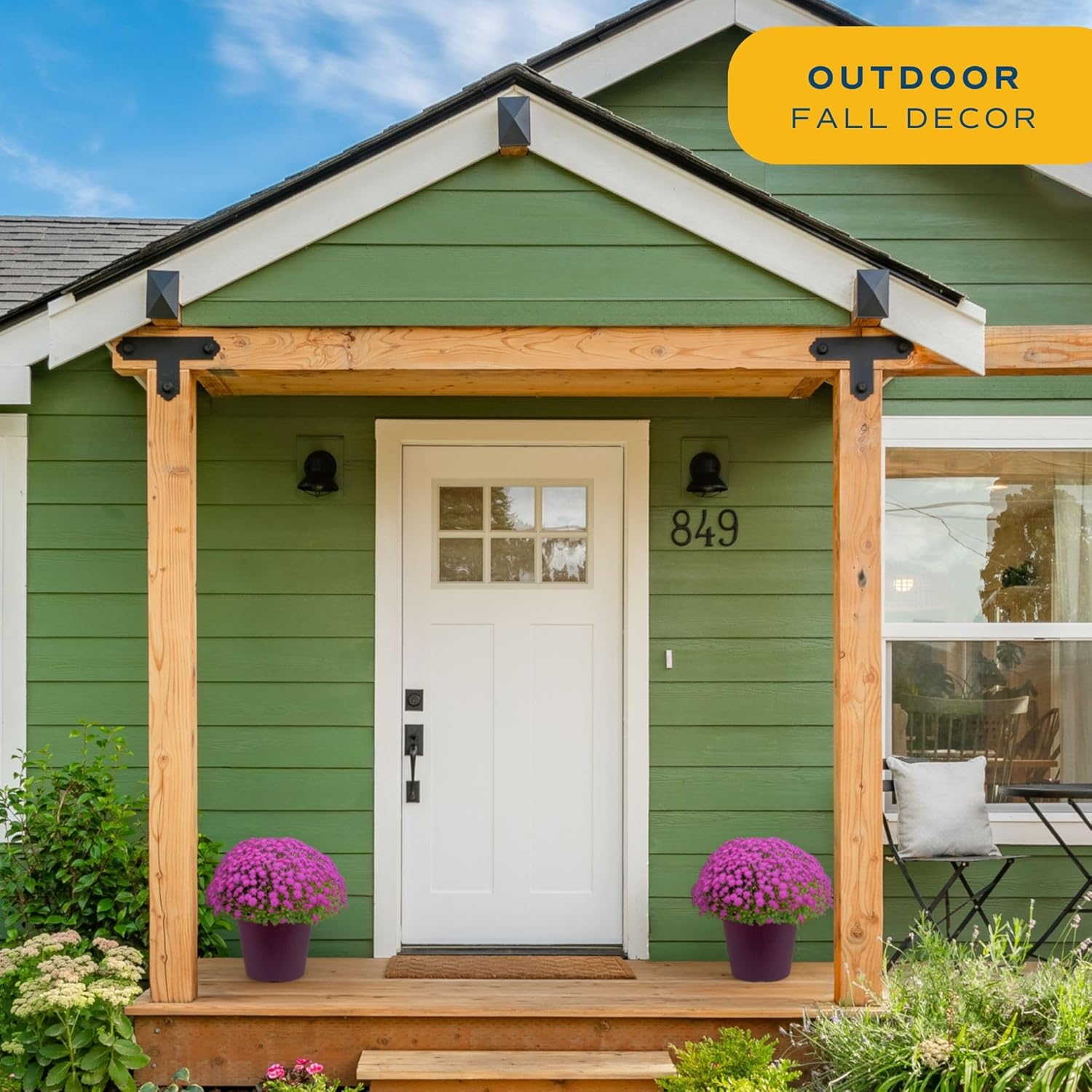 - EYE-CATCHING FOR FALL DECOR Whether you're styling your porch, entryway, or patio, these purple mums add a pop of color that pairs perfectly with pumpkins, gourds, and hay bales