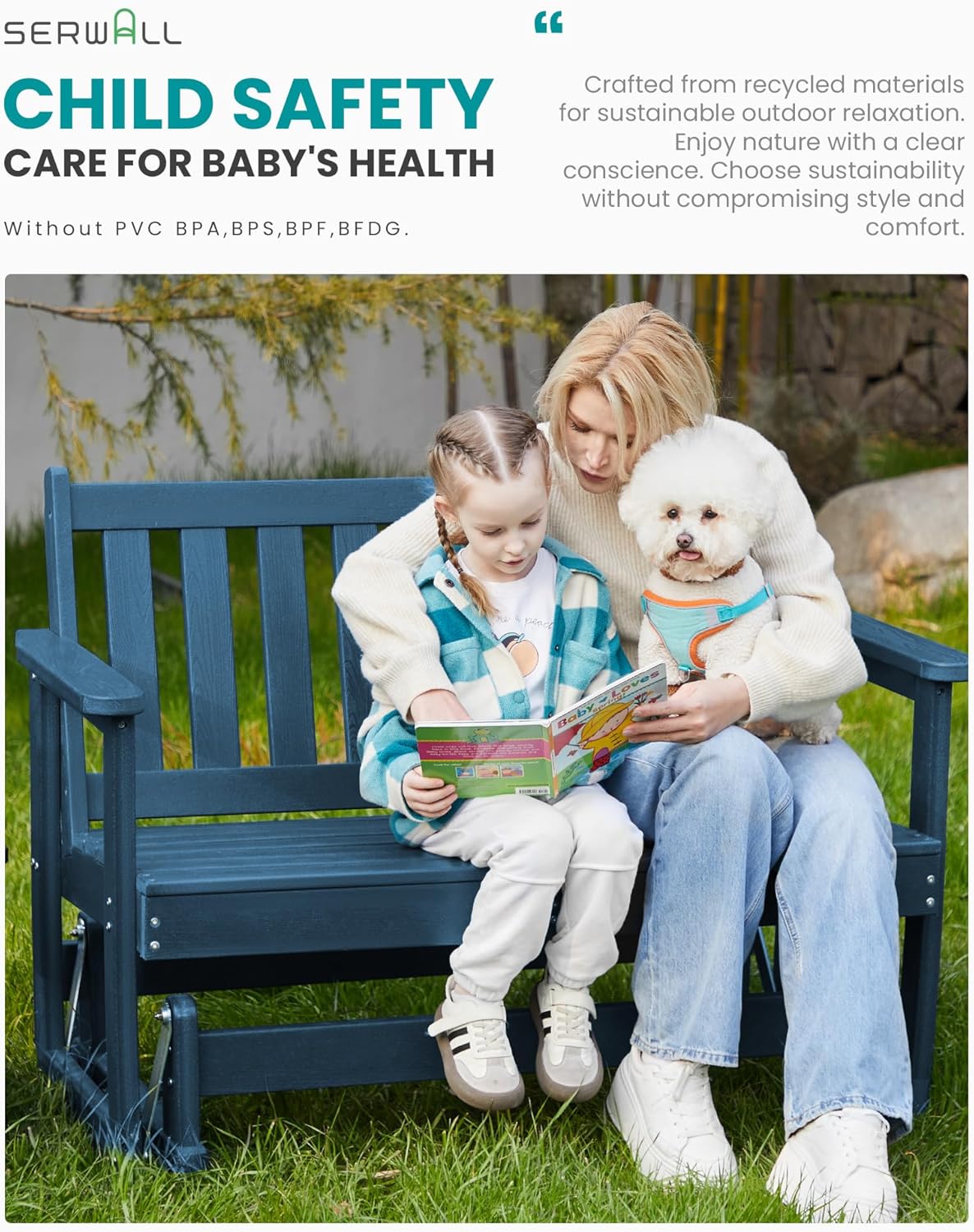 SERWALL Outdoor Glider Bench Set of 2, HDPE Weather-Resistant Swinging Bench for Backyard Garden Porch, Navy Blue