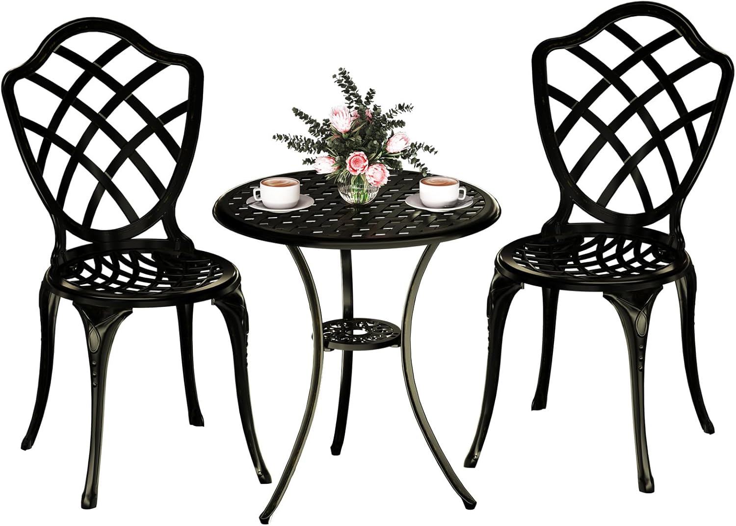 - 【Durable Cast Aluminum】Made of anti-rust, weather-resistant cast aluminum, making bistro set perfect for long-term outdoor use in any climate