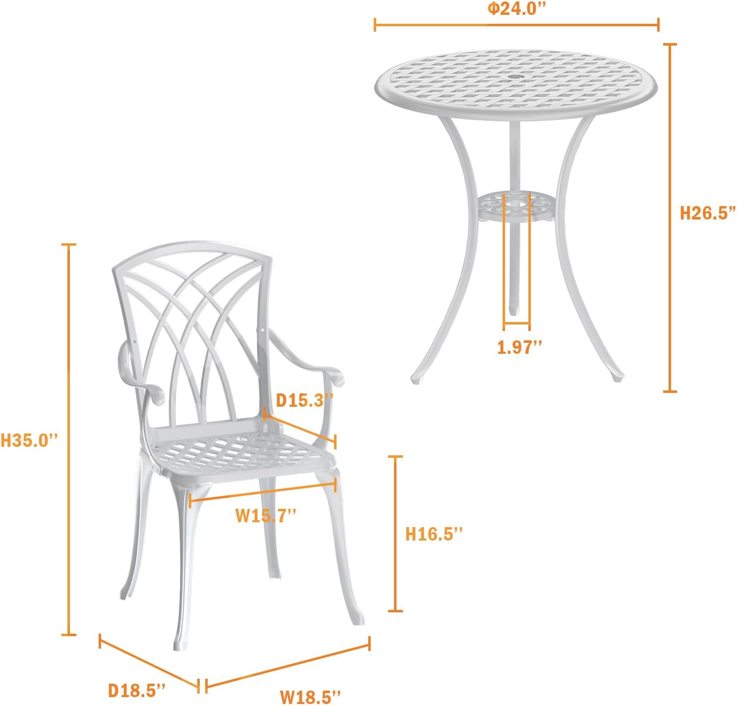 - 【Durable Cast Aluminum】Made of anti-rust, weather-resistant cast aluminum, making bistro set perfect for long-term outdoor use in any climate