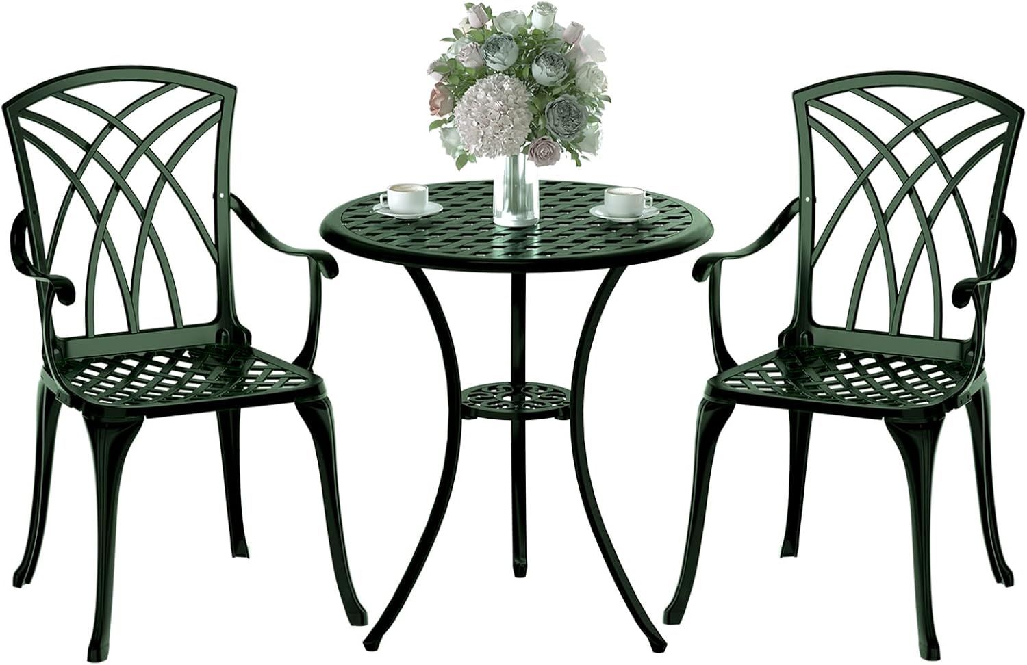 - 【Durable Cast Aluminum】Made of anti-rust, weather-resistant cast aluminum, making bistro set perfect for long-term outdoor use in any climate