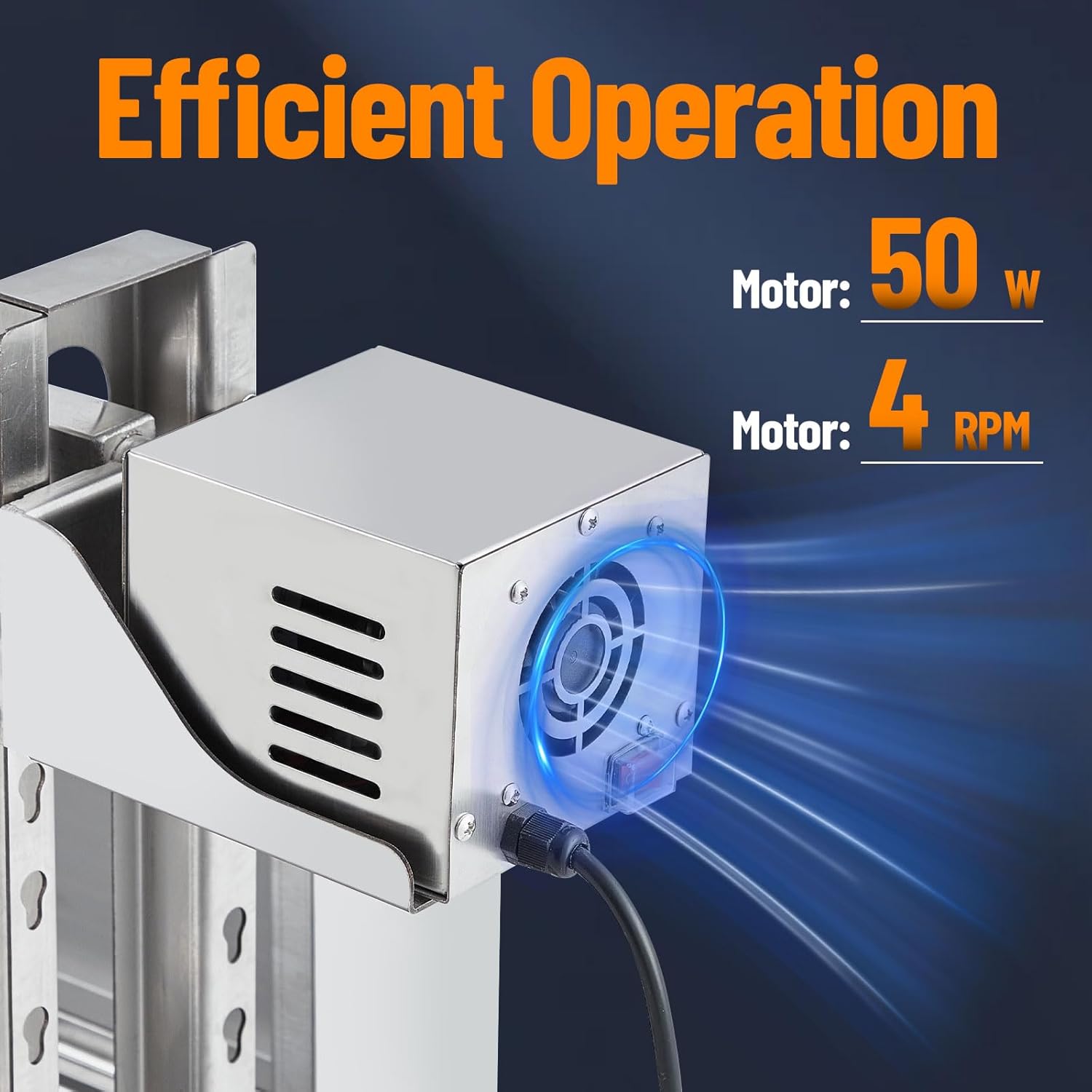 - Reliable 50W Motor Operation:Energy-conscious motor delivers consistent rotation for even cooking results.Maintains meat juiciness during extended roasting sessions.