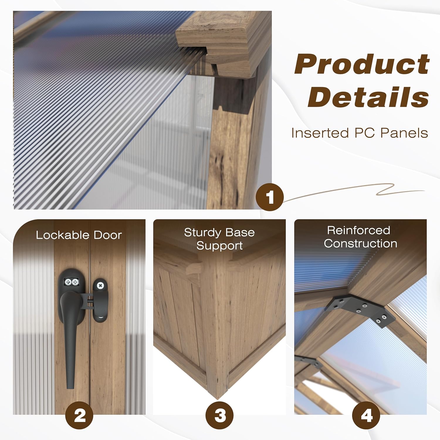 - 【Inserted multi-layers PC Panel】 Composed of clear and translucent polycarbonate panels, provide 99.99% UV protection. Polycarbonate panels offer enough sunlight for your plants and block damaged UV.