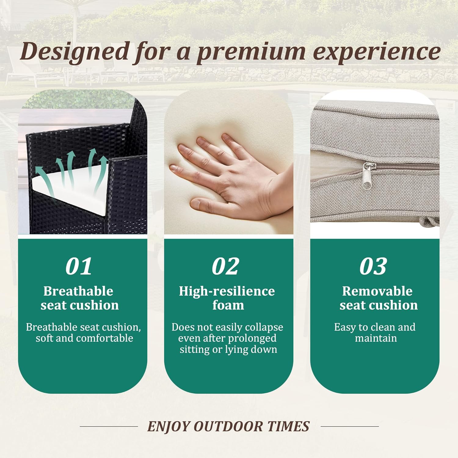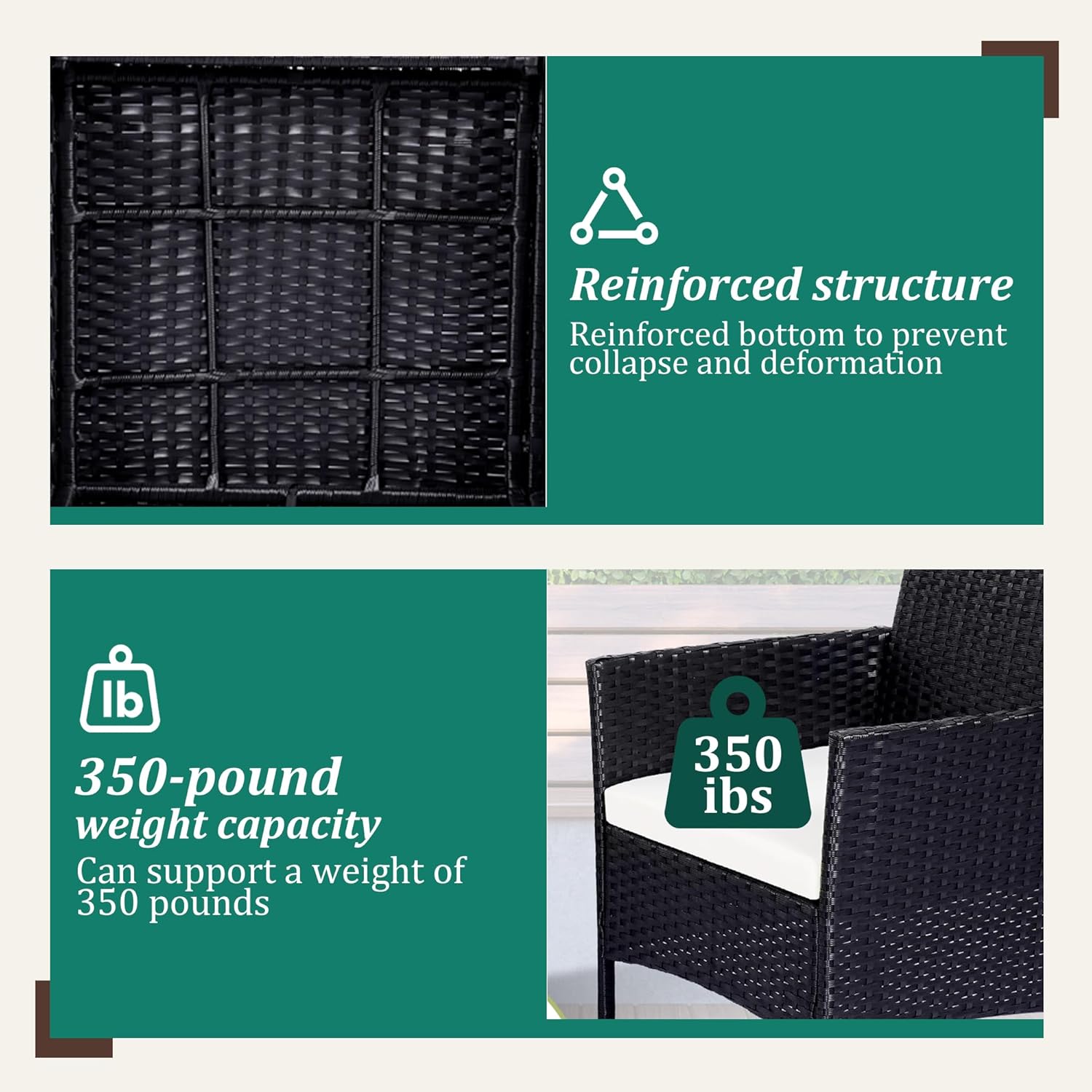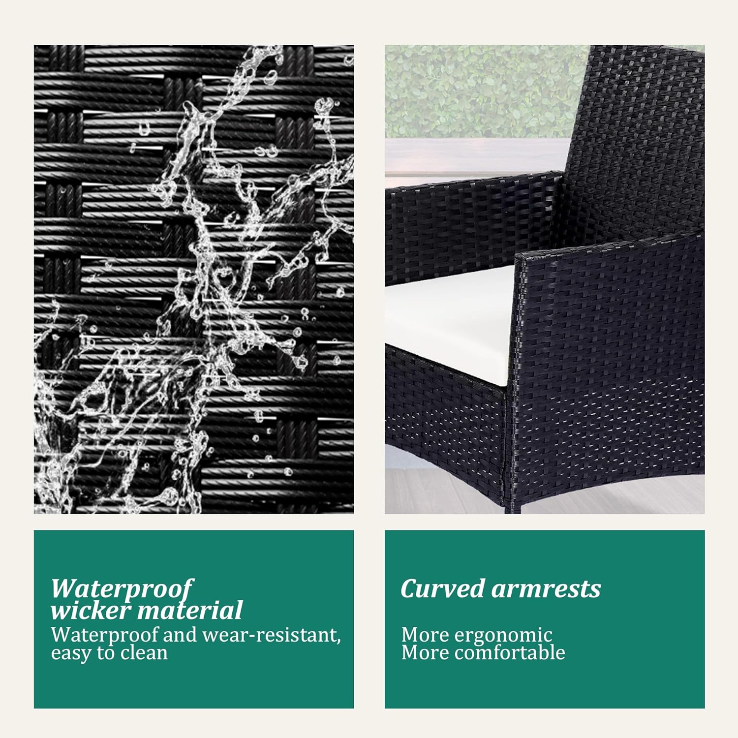 - 【Complete 4-Piece Set】 Includes 7 main furniture (1 Coffee Table + 3 Chairs + 3 Seat Cushions). Everything needed for instant outdoor living