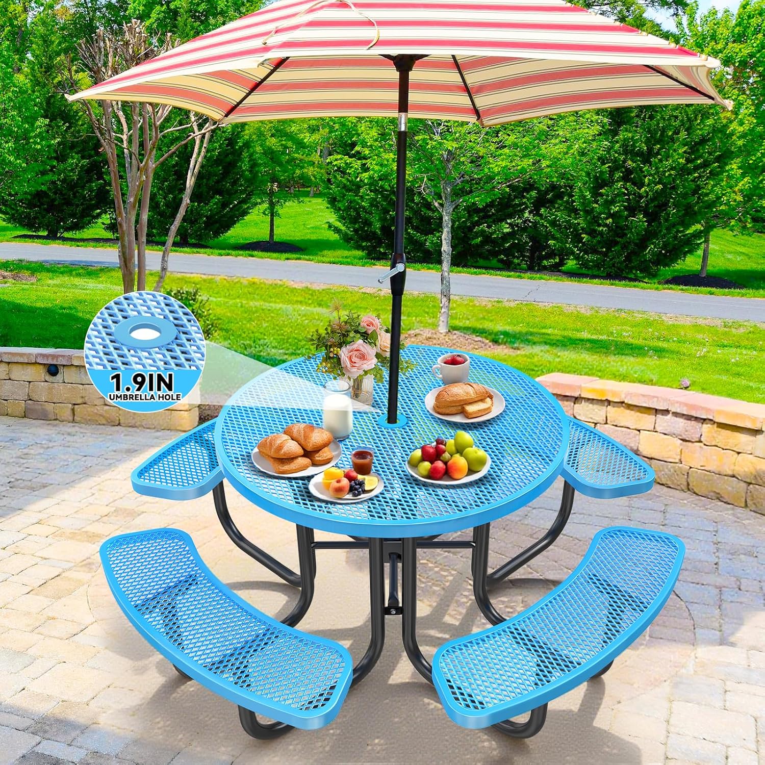 Heavy-Duty Park Bench or Table for Outside - Black Coated Outdoor Furniture Steel Bench, Commercial-Grade Outdoor Benches Weatherproof for Park, Patio, Porch (Blue, 46” (Rd. Table))