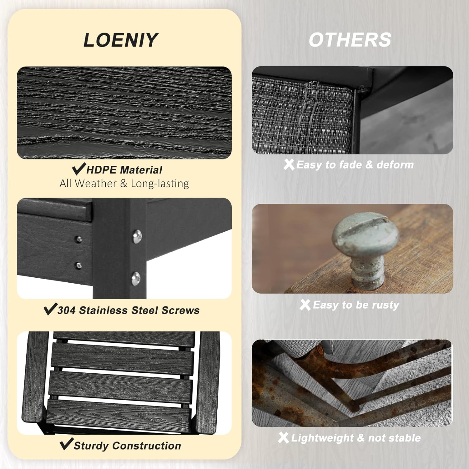 - 【All-Weather Material】Made of High-density polyethylene (HDPE) and 304 stainless steel hardware, this patio dining set is long-lasting and will not crack, scratch, rust, or fade over time. In addition, the table and chairs are designed with an elegant wood-like texture, combining both practicality and aesthetics.