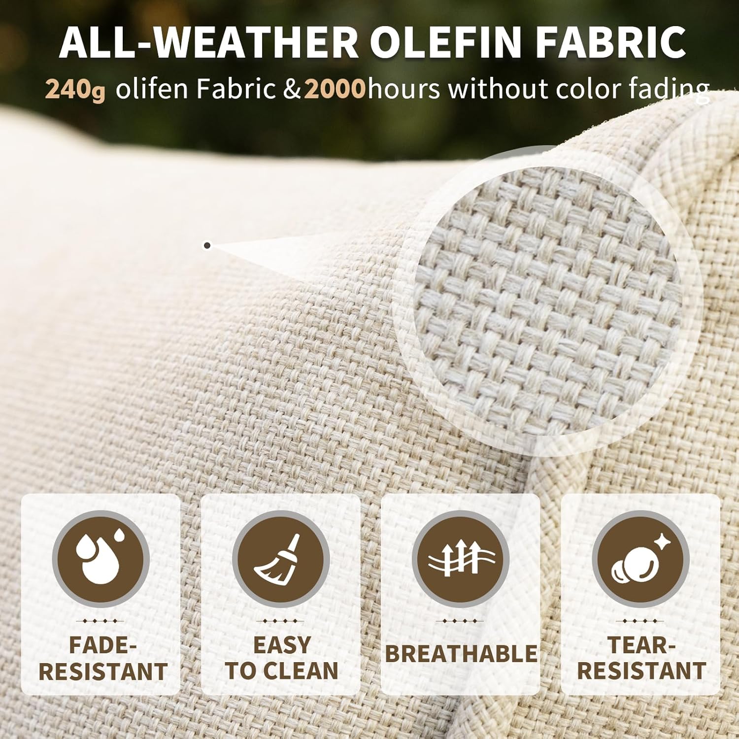 - Durable & All-Weather: Crafted from powder-coated metal frames and premium PE rattan, this outdoor furniture set is built to last. Natural wood armrests and legs add strength, ensuring years of outdoor enjoyment, no matter the weather