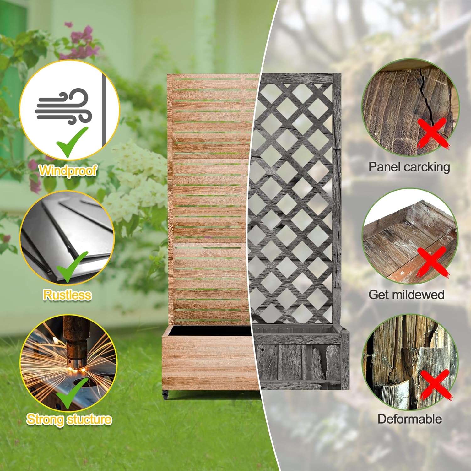 - 【Space-Saving Design】The combination of the planter box and trellis saves space while offering an attractive garden bed. This space-efficient solution is ideal for gardening enthusiasts facing space constraints, allowing them to cultivate beautiful gardens even in limited areas.